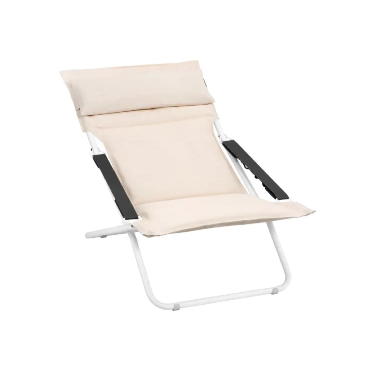 Transabed sun lounger from Lafuma is a generous lounge chair for relaxing on the balcony, terrace, or in the garden. The folding construction makes it easy to move and offers multiple reclining positions, from a relaxed semi-recline to a comfortable lounge position. The durable fabric is stretched over a sturdy steel frame that provides responsive support for the whole body. Wide armrests and a low seat deliver superb comfort for sunbathing, reading, and long summer evenings. For a complete seating experience, pair the sun lounger with the Next footstool from the same series. A favorite for anyone who wants a flexible outdoor chair with high comfort and smart design.