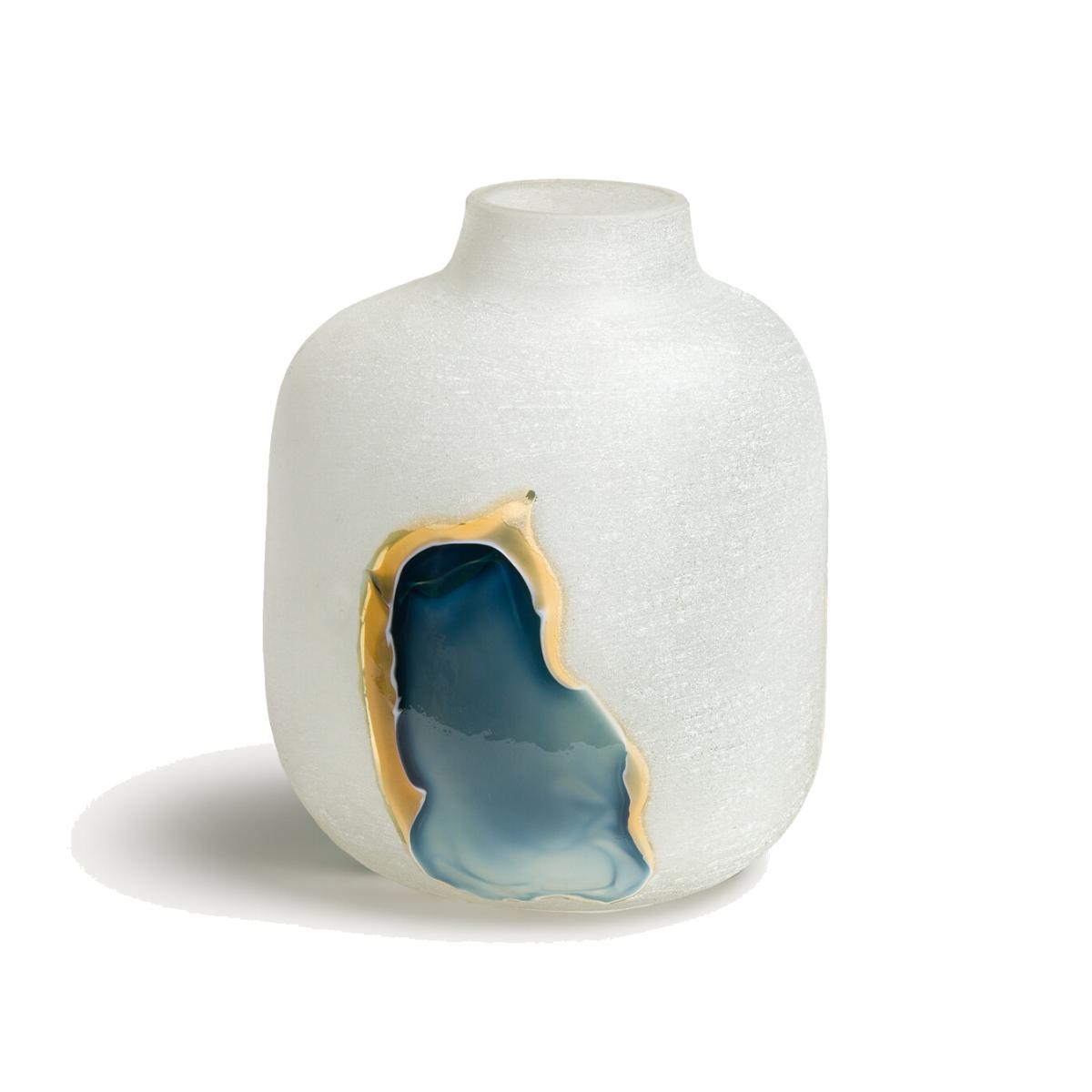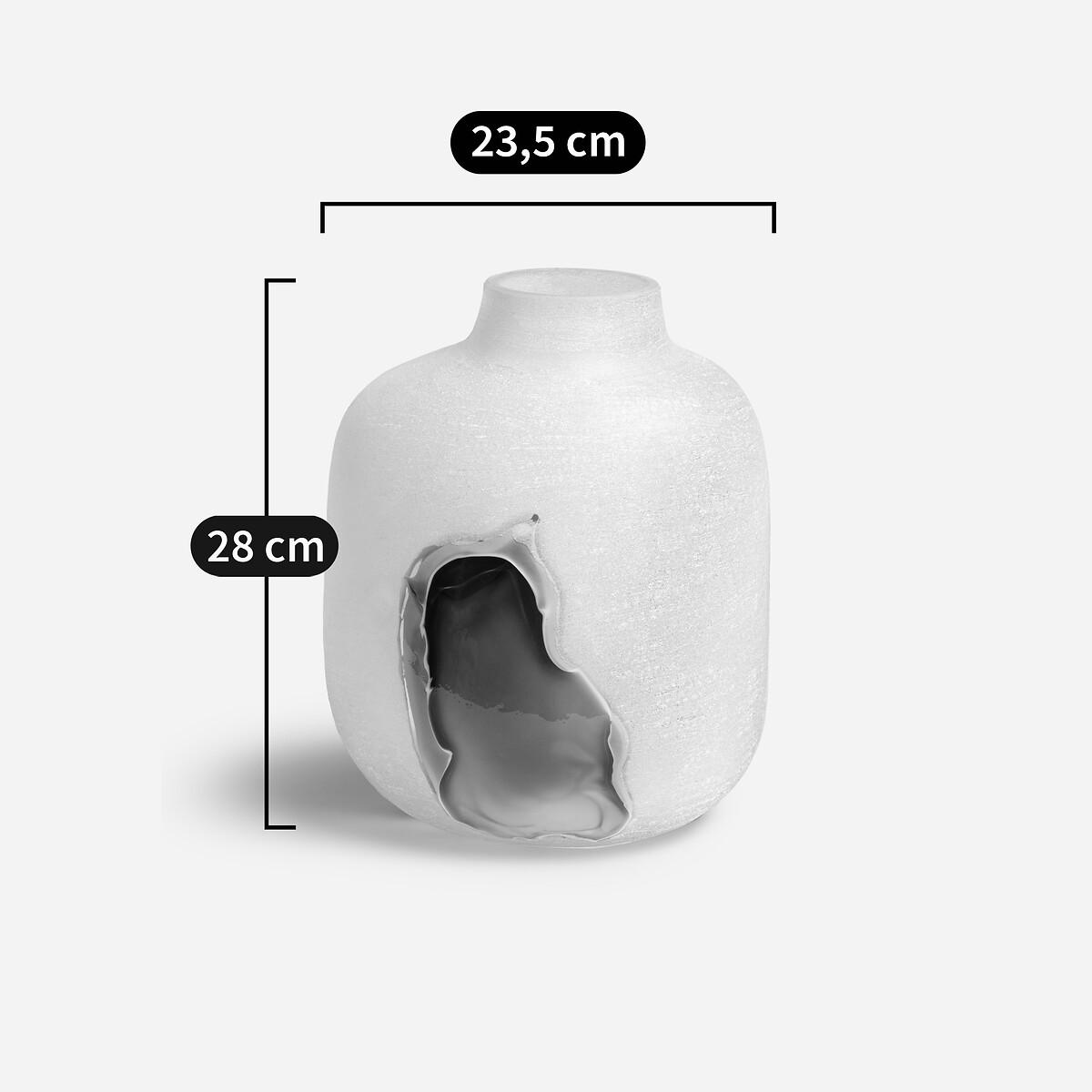 Its subtle and strikingvisual effects are created by hand by the glassmaker. The hand-blown glass is frosted to create a textured, opalescent appearance. Touches of glass are affixed to create a lagoon with mineral tones, veering between land and sea. Product Details • Made from hand-blown glass • Hand-crafted, each piece is unique. Shapes, colours and dimensions may vary slightly from product to product. Dimensions • Diameter: 23.5cm • Height: 28cm. Dimensions and weight of parcel • 1 parcel • L28.5 x H33 x D28.5cm. 0.8kg