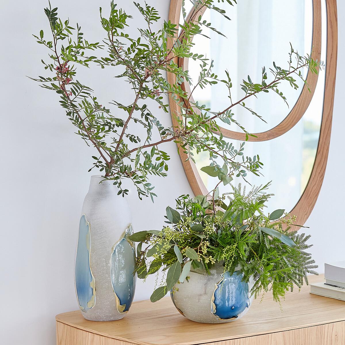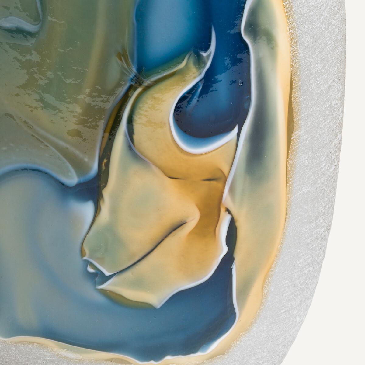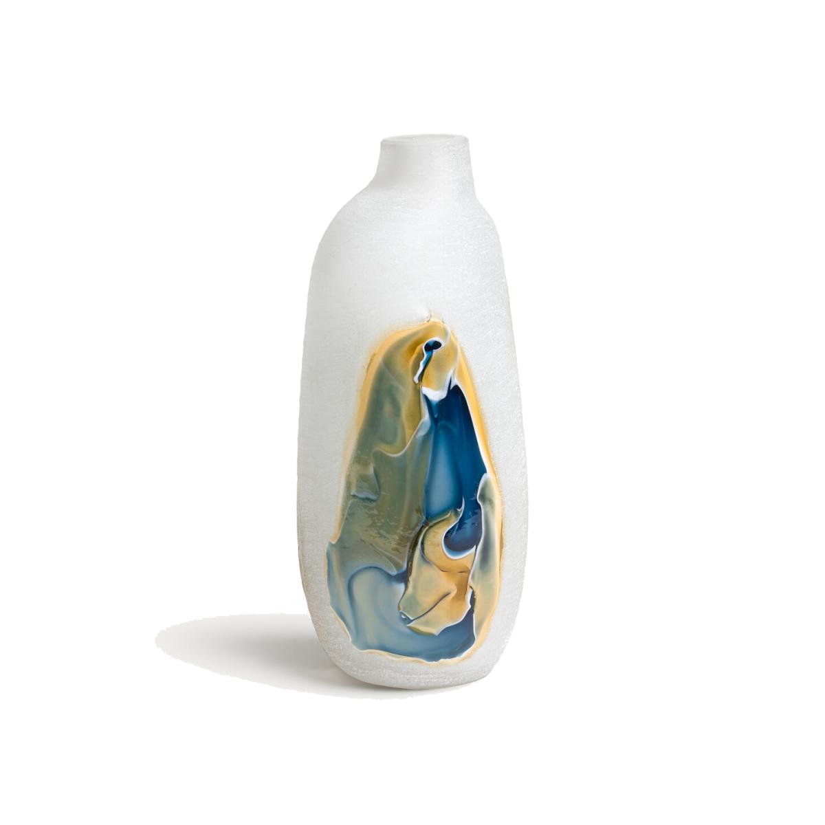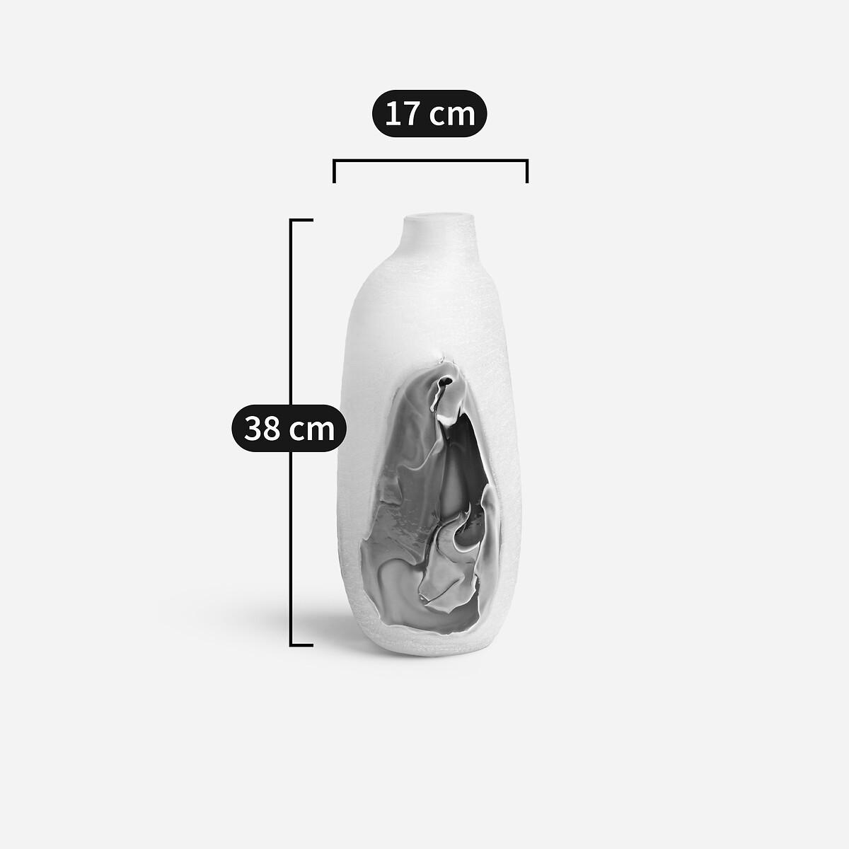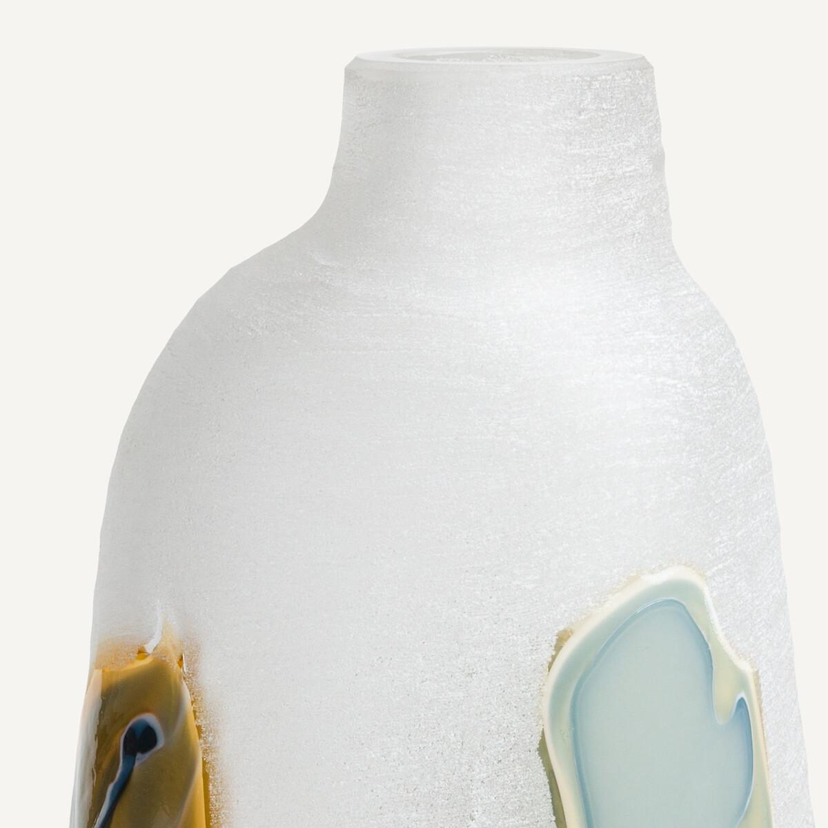 Its subtle and strikingvisual effects are created by hand by the glassmaker. The hand-blown glass is frosted to create a textured, opalescent appearance. Touches of glass are affixed to create a lagoon with mineral tones, veering between land and sea. Product Details • Made from hand-blown glass • Hand-crafted, each piece is unique. Shapes, colours and dimensions may vary slightly from product to product. Dimensions • Diameter: 17cm • Height: 38cm. Dimensions and weight of parcel • 1 parcel • L22 x H43 x D20.5cm. 1.4kg
