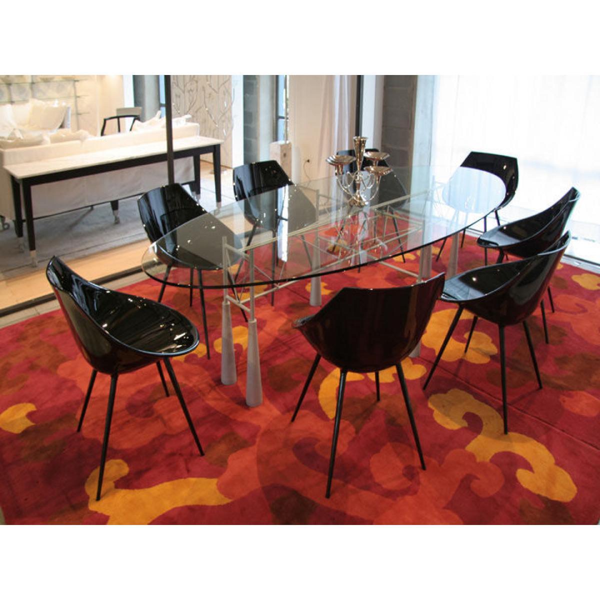 I love this armchair for its sleek, contemporary look and bold colour - it’s a great statement piece for modern or eclectic interiors. Its lacquered finish and metal legs give it a crisp, polished feel that works well in minimalist spaces, but it can also add a pop of personality to more eclectic or urban environments. When styling, consider pairing it with neutral or muted table settings to let the vibrant red stand out, or mix it with other colourful accessories for a playful, energetic vibe. Practical tips include keeping the surrounding area uncluttered to highlight its shape, and using it as a dining chair for casual, everyday use or as an accent piece in a lounge or entryway for a stylish, versatile touch.