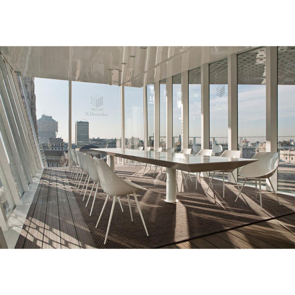 Lago' is the demonstration of how the idea of lightness can become a project. Characterized by the embracing shell and "stiletto" legs, Lago' is enhanced by intense and bright colors that deliberately smooth the entire surface.