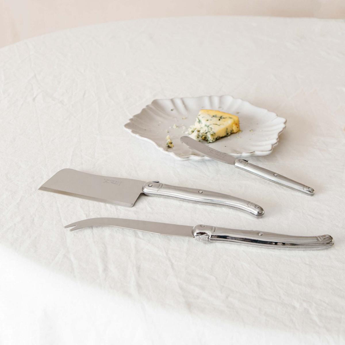 I love this cheese set for its sleek, timeless design and high-quality steel finish, which adds a touch of sophistication to any dining setup. It works particularly well in modern and minimalist interiors, but can also complement more classic or coastal spaces thanks to its clean lines and understated elegance. For practical styling, I recommend pairing it with soft linen napkins and a wooden cheese board for a more natural feel. Displayed on a marble or slate surface, it will contribute to an organised and inviting cheese station, making your table both functional and visually appealing during casual gatherings or more refined dinners.