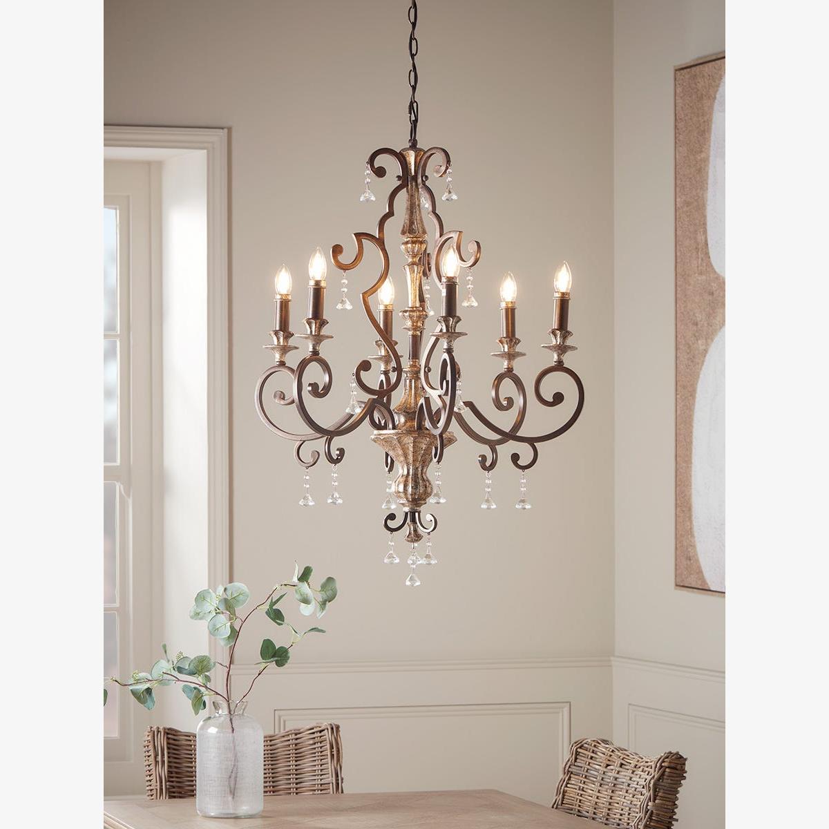 Add some stately home style and a little old world Italian glamour to your interior with our romantic Laila Chandelier. This Baroque-inspired light dazzles with its opulent curves and luxurious bronzed finish. Antiqued golden highlights and strategically placed multi-faceted crystal drops add extra refinement. With holders for six candle bulbs, this magnificent chandelier will bring ballroom worthy brilliance to a special room in your home. Discover how to create the perfect lighting scheme for your home using our Lighting Buying Guide.