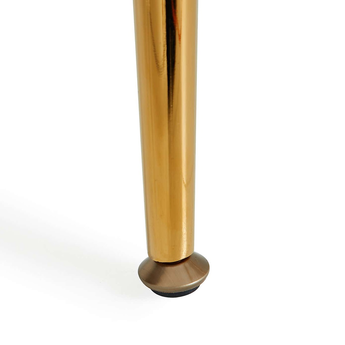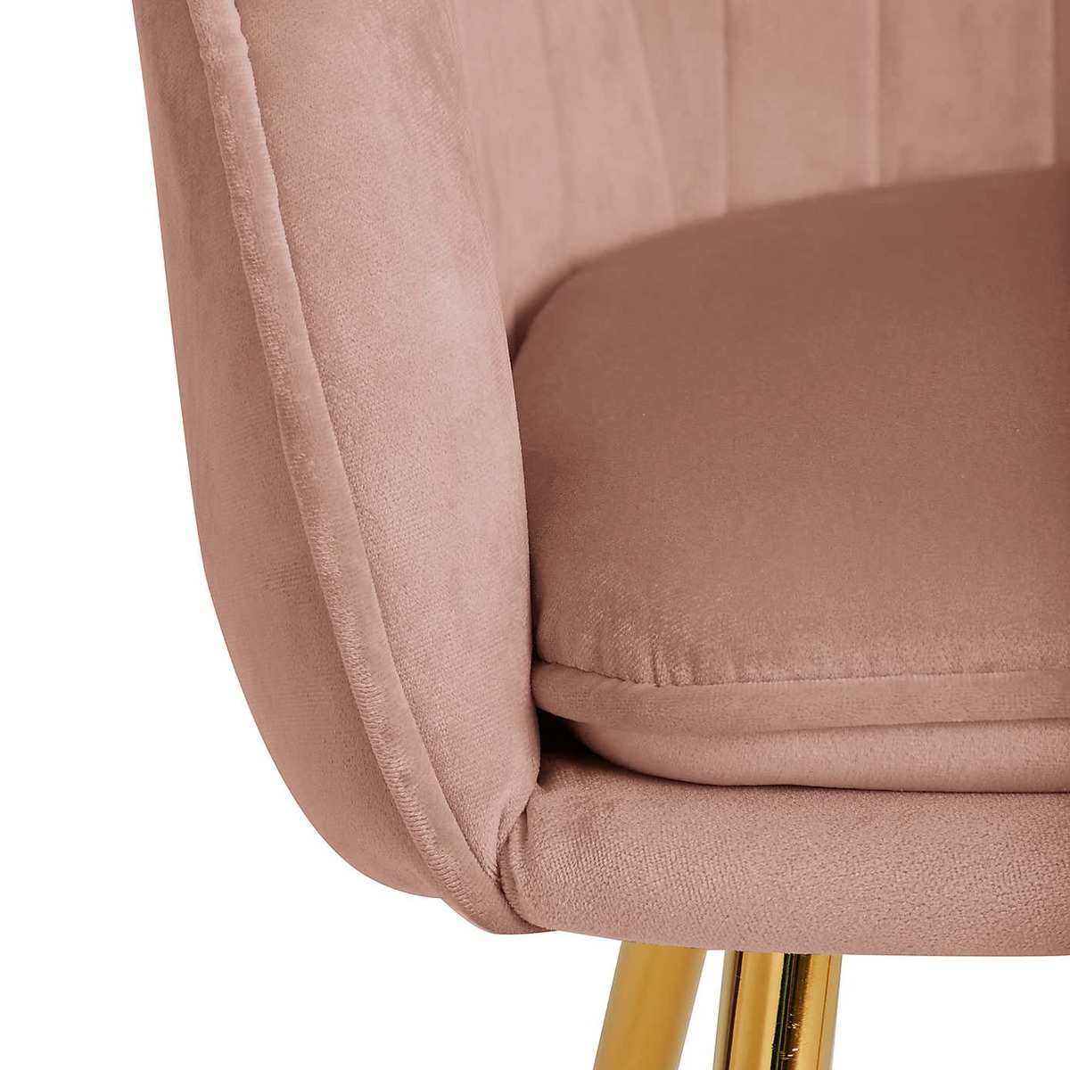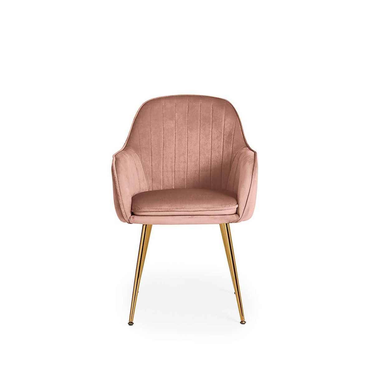 Finished in a soft touch velvet fabric in a range of colourways, the Laila chair features a generously proportioned, foam filled seat to provide maximum comfort. This stylish chair is crafted with a pleated, curved shell back and gold metal legs to add a contemporary touch.