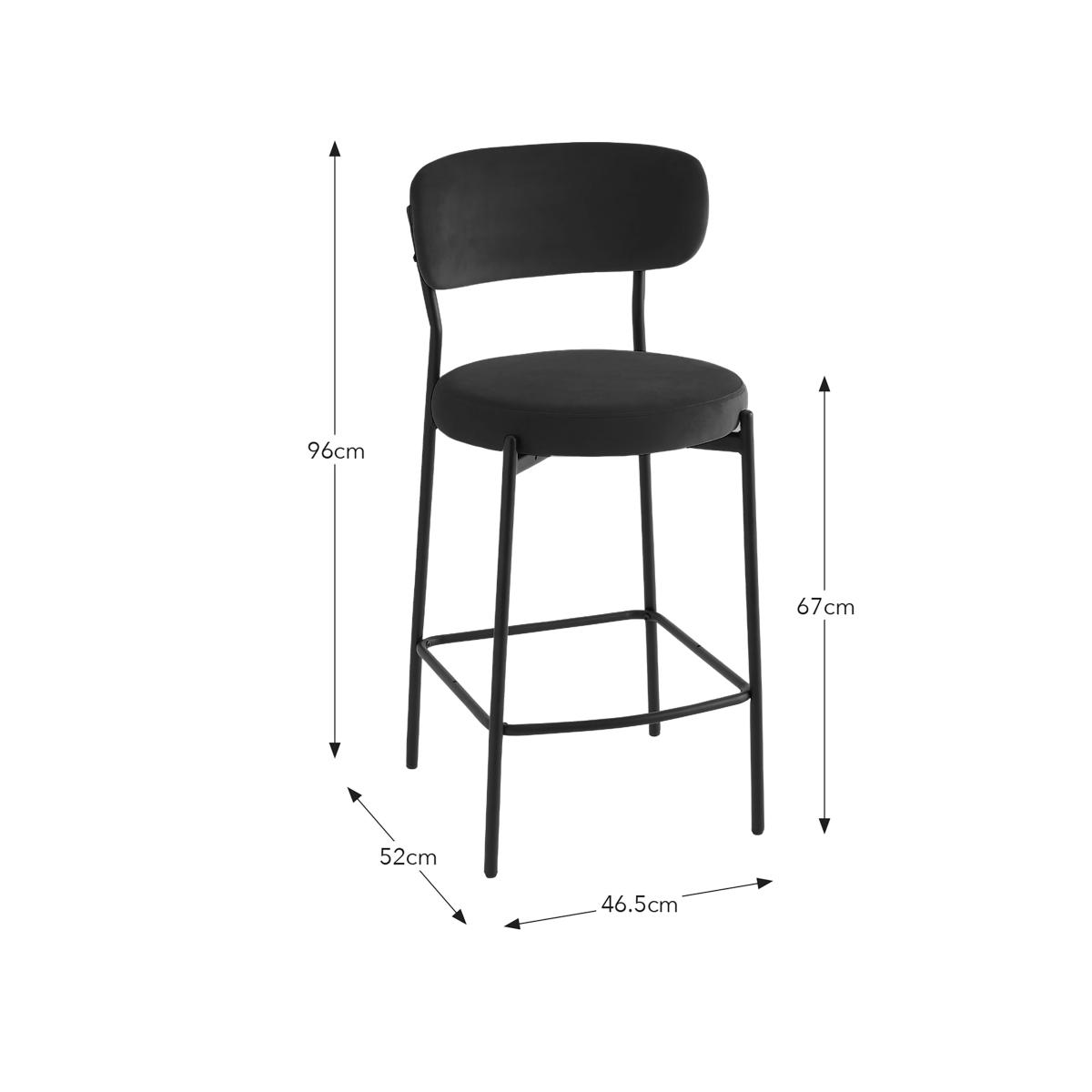 I love this barstool because of its sleek, contemporary look and the luxurious feel of the velvet upholstery, which instantly elevates a casual space. The black velvet finish makes it a versatile choice that pairs well with a range of colour schemes, from modern minimalistic kitchens to eclectic home bars. It works particularly well in interiors that aim for a sophisticated yet understated vibe. Practical styling tips include pairing it with a marble or wooden bar counter to add texture, and keeping surrounding colours neutral to let the velvet feature stand out. Because of its upholstery, it's best suited for occasional use or spaces where comfort and style are prioritised over heavy-duty wear.