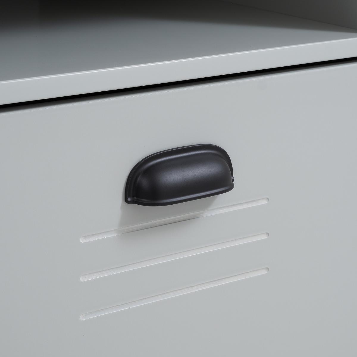 Create a unique industrial vibe with the Lakers Locker Bedroom Collection. Crafted from solid pine and MDF in a metal effect grey lacquer with black metal effect legs and handles, the Lakers range features ventilation detailing to resemble a vintage locker effect. Perfect for a range of modern, retro bedrooms.