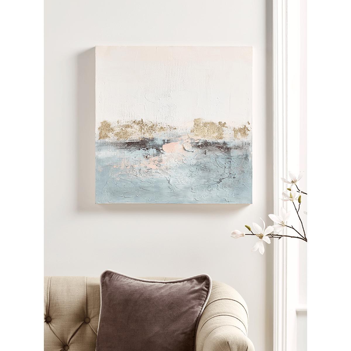 I love the Lakeside Abstract Canvas for its versatile colour palette and contemporary appeal. Its calming blend of neutral tones with soft hints of blue makes it an ideal feature piece for both modern and coastal interiors. It works particularly well above a sofa or mantelpiece, bringing a sense of tranquillity to living spaces. For styling, consider pairing it with other understated accessories-think textured cushions or minimalistic tableware-to create a cohesive look. To enhance its visual impact, hang it at eye level and ensure it’s slightly to the side of centre for a balanced aesthetic. Overall, this artwork is a practical choice for adding depth and personality without overwhelming the space.