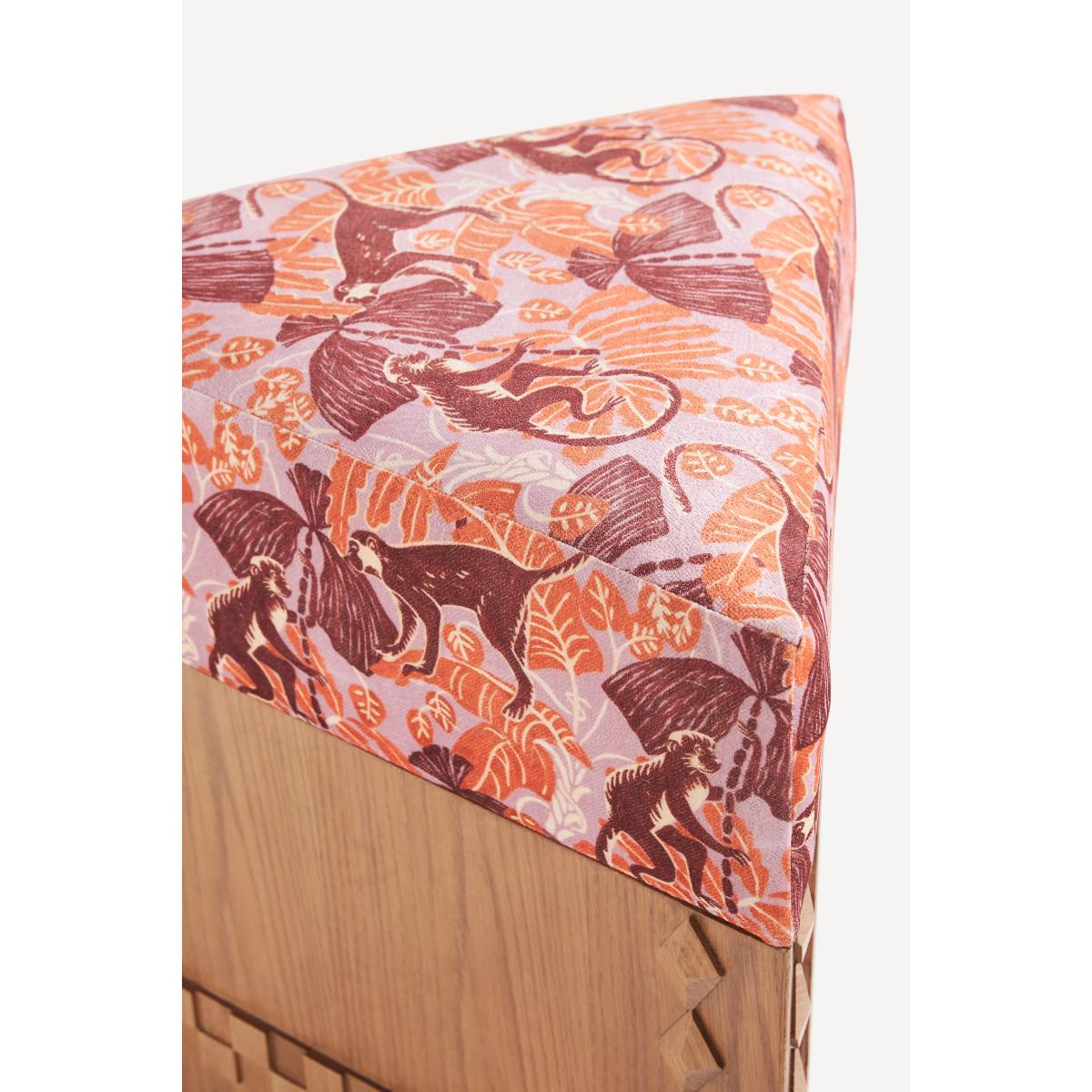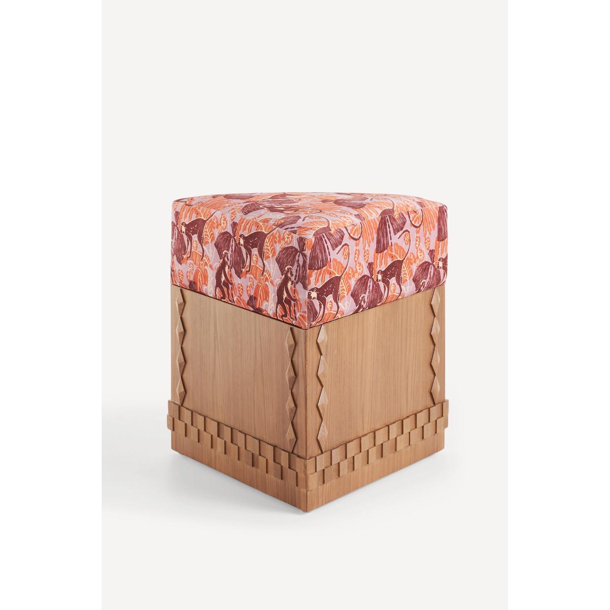 I love this little footstool - it’s versatile and adds a touch of charm to various interiors. Its reimagined twist on a classic design makes it suitable for cosy living rooms, bedrooms, or even a dressing area. Its compact size makes it perfect for use as an extra seat or a footrest without overwhelming the space. For styling, I recommend pairing it with a mix of textured fabrics or patterns to create an eclectic feel, especially in vintage or bohemian settings. Additionally, placing it beneath a window or next to a statement piece can make it a functional yet decorative addition. Practical tips include using a washable cover if you want to add colour or pattern seasonally, and pairing it with lower shelves or side tables for an effortless layered look.