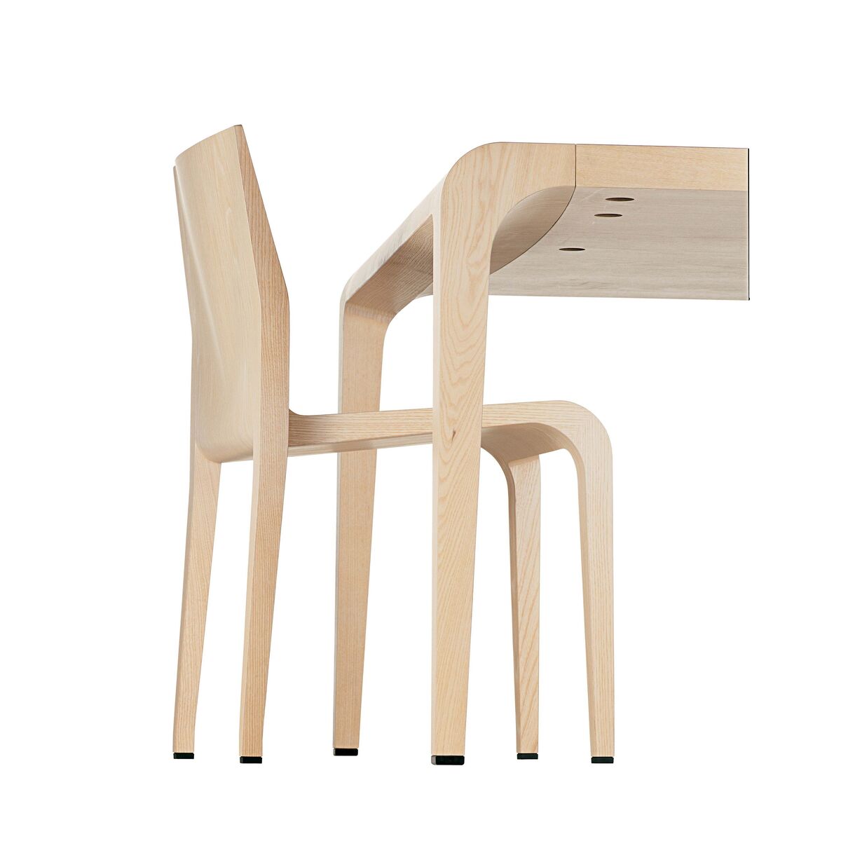 The secret of this stacking, minimal chair that has received many awards is to be found in the lightness, born of the conception of its solid wooden structure, covered by two veneered layers and resembling the wings of gliders.