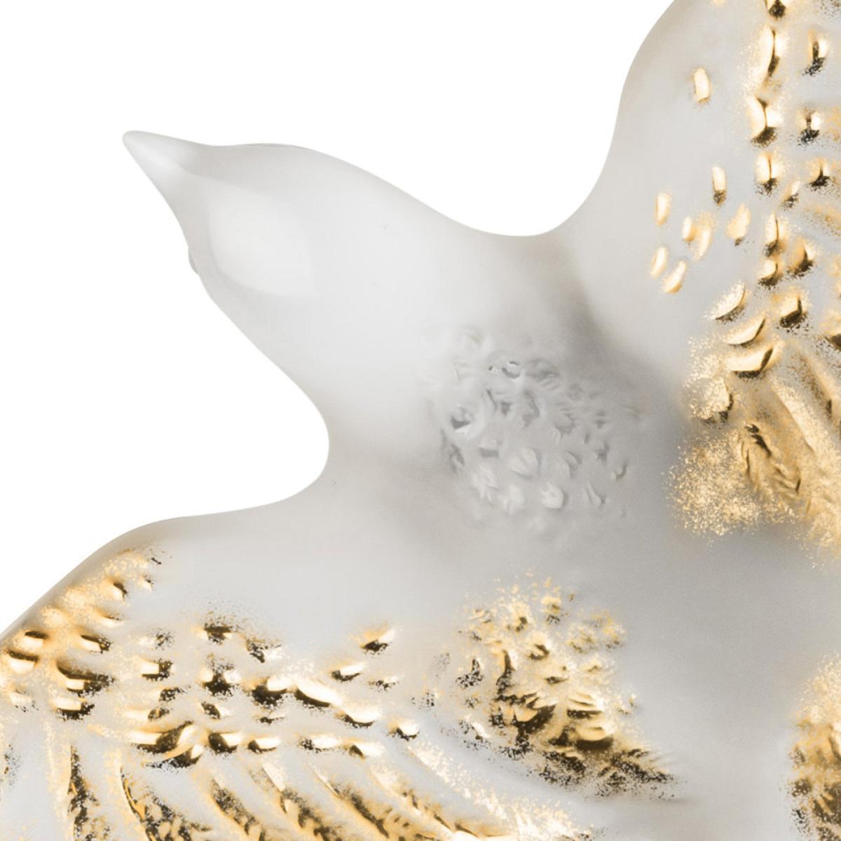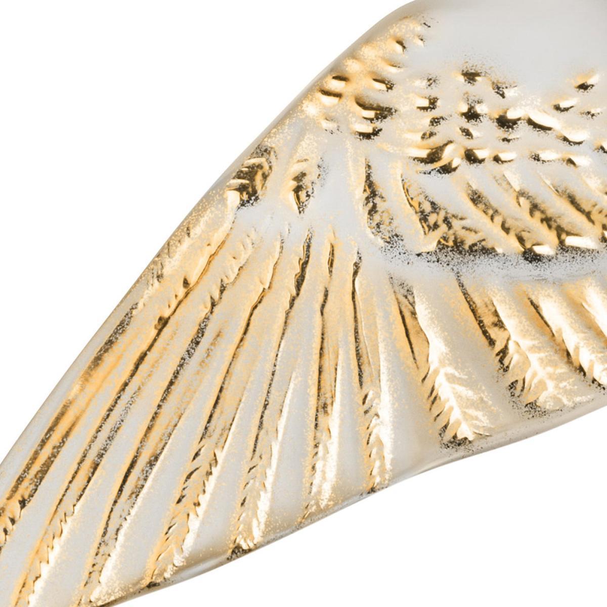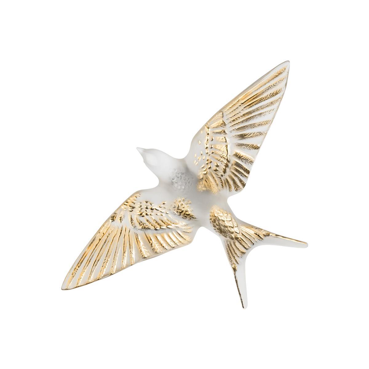 Make a unique statement in your home with this Hirondelles Swallow Wings Down sculpture from Lalique. Handcrafted in France from crystal, this sculpture takes the form of an intricately detailed swallow in a wings down position that has been inspired by René Lalique’s use of swallows across his art. Designed to attach to a wall, this sculpture is perfect for pairing with multiple swallow to create a piece of art in your home.