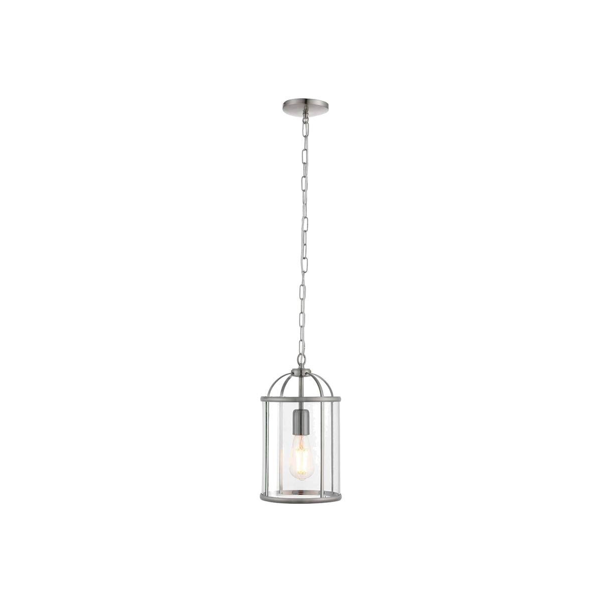 The 1 light pendant has an adjustable drop and combines a metal frame work with a satin nickel finish and clear glass panels. Suitable for use with LED lamps and dimmable. Other size and finish options also available