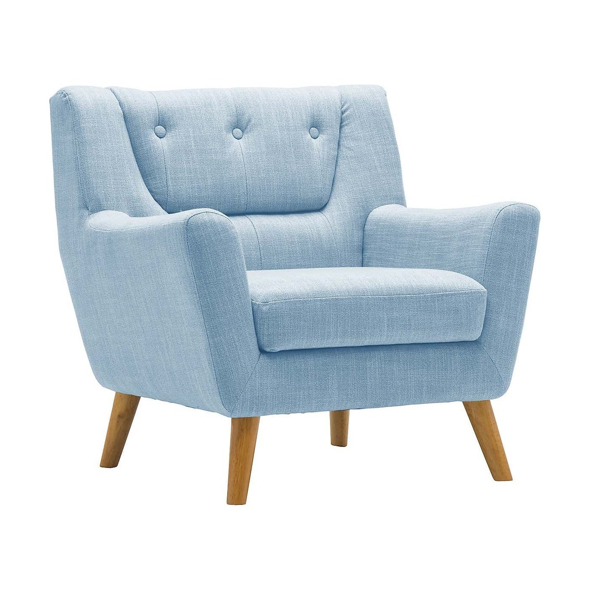 The Lambeth Armchair features streamlined shapes and a classic button back backrest for this retro inspired sofa. The Lambeth range will add contemporary edge to any living room interior. With polyester fabric upholstery and foam filled cushions with a serpentine sprung seat, the Lambeth is firm yet supportive.