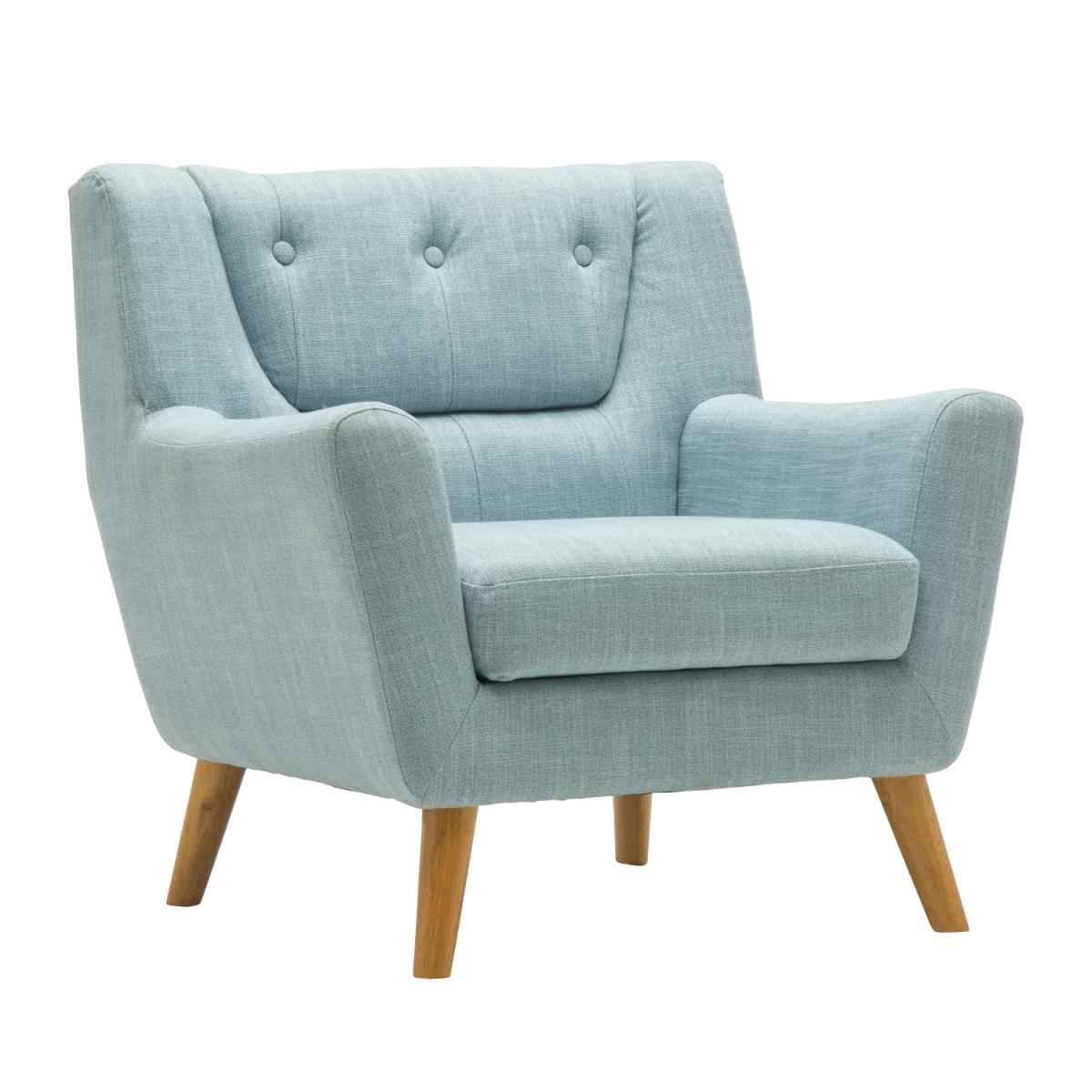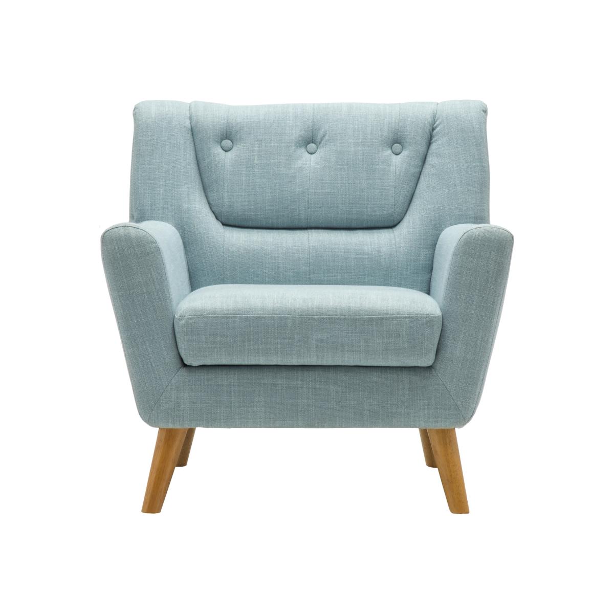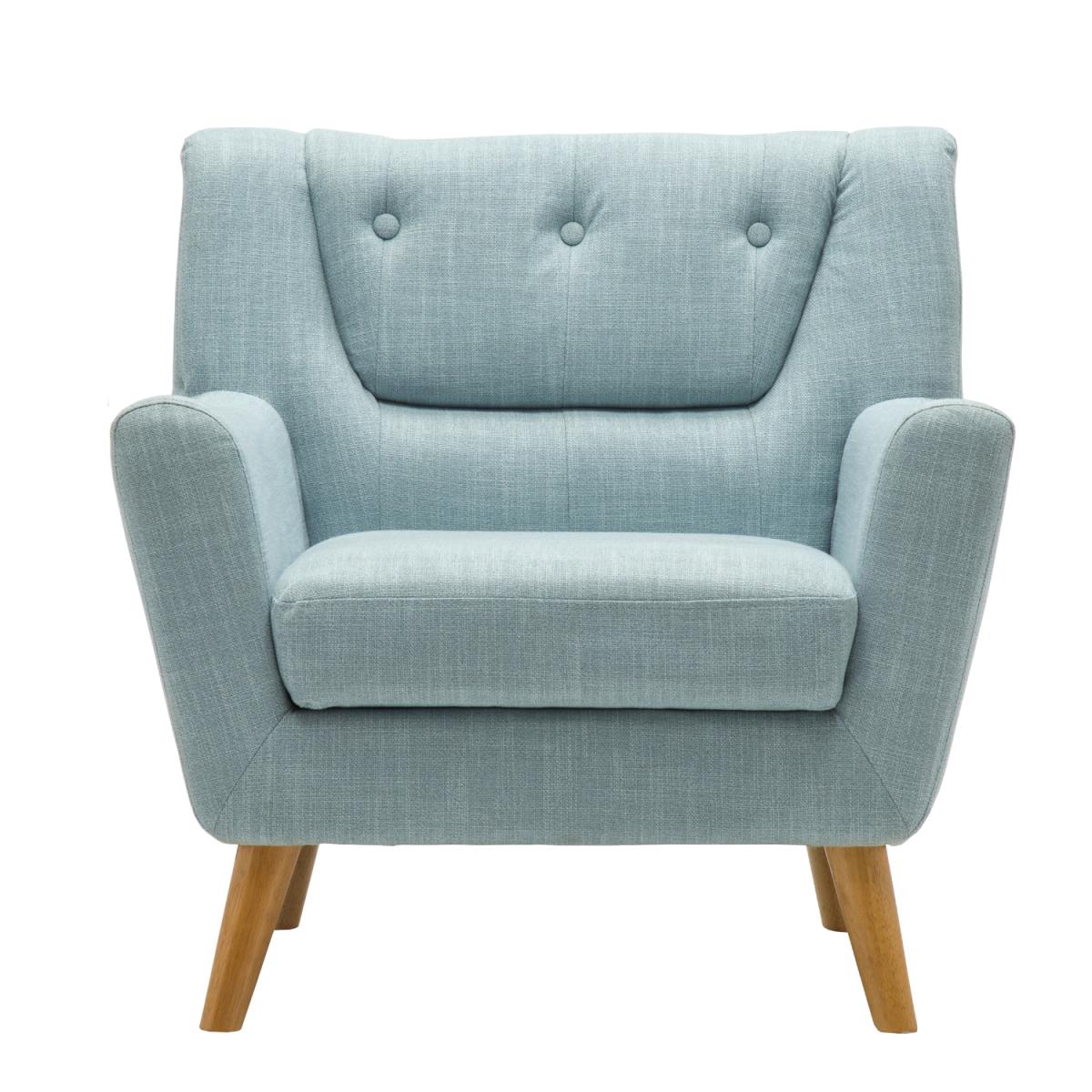 Add a touch of 50s chic to your living room with this stunning Lambeth Chair. It effortlessly combines vintage aesthetics and a modern finish. With its sturdy rubberwood legs and foam cushioning, this Lambeth Chair is perfect for curling up on with a good book or relaxing in front of the TV.Its button back detailing and smart upholstery will complement any room, while the grey and duck egg shades are contemporary and understated, so won't overpower your existing furniture. It requires virtually no assembly and will soon become a family favourite in your home.