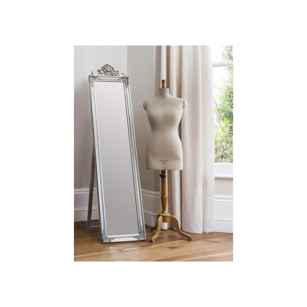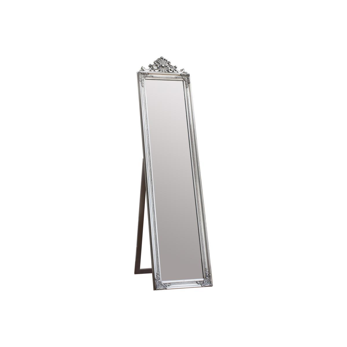 This tall floor-standing rectangular mirror will add a touch of elegance to any home. It’s perfect in the bedroom or dressing room for checking how you look before you go out. The traditional silver bevelled frame has classic ornate scroll decoration to the top and corners. Gorgeously ornate, tall floor standing mirror. Silver coloured bevelled frame. Classic scroll style decoration. Timelessly elegant design. Equally at home in classic and contemporary interiors. Dimensions. Height: 179cm (70 inches). Width: 49cm (19inches).
