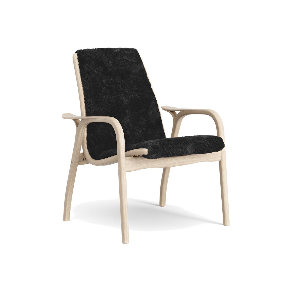 Swedese Laminett arm chair white pigmented oak/sheep skin Black (black)