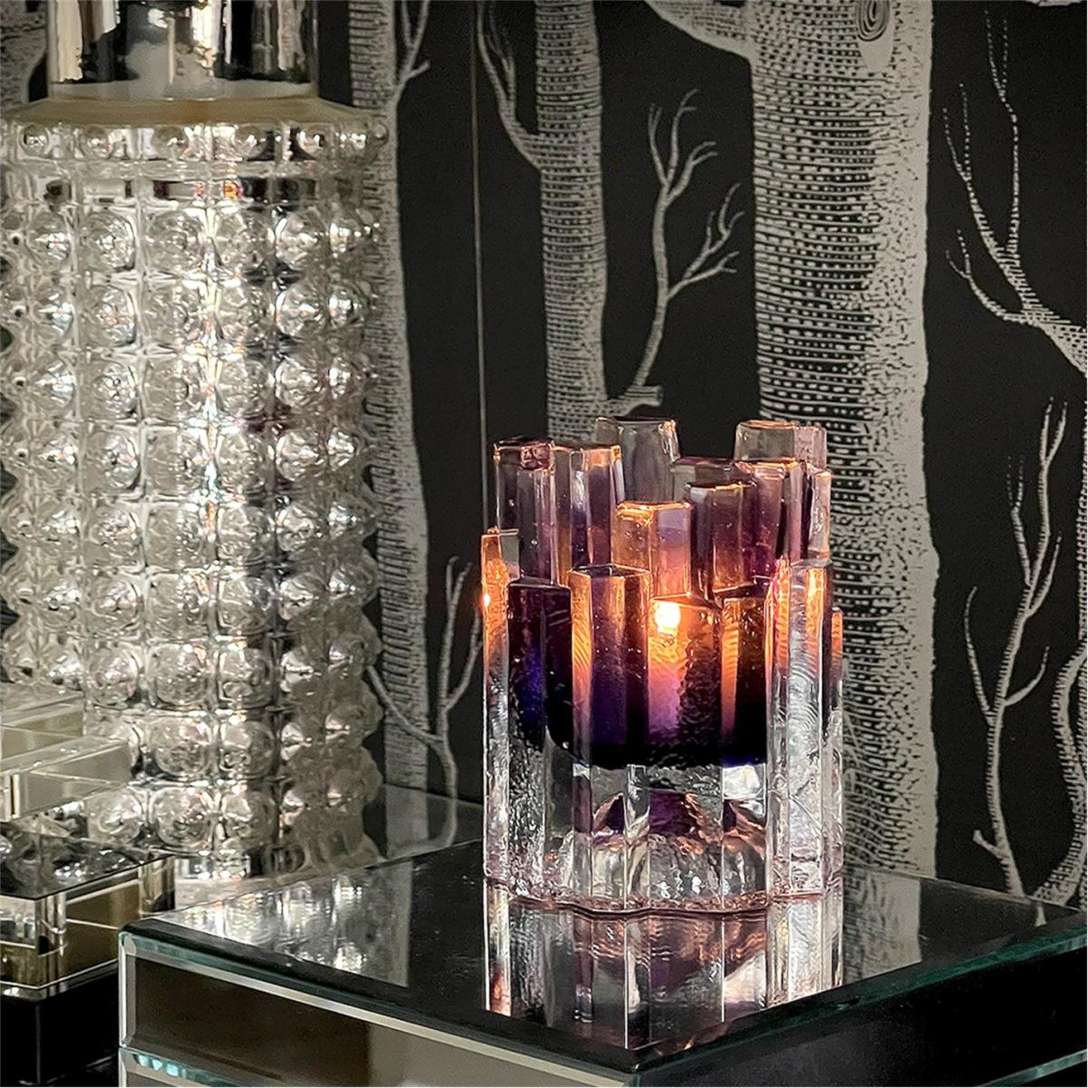 I’m a fan of the rock lamp for its sculptural form and smoky purple hue - it brings a modern edge without shouting for attention. It sits well in minimalist, Scandi or contemporary settings where clean lines and a restrained palette rule. For styling, place it in threes on a low console or use it as a table centrepiece alongside matte ceramics and a sprig of eucalyptus. The facets catch candlelight beautifully, so keep surrounding surfaces simple to let its geometry steal the show.