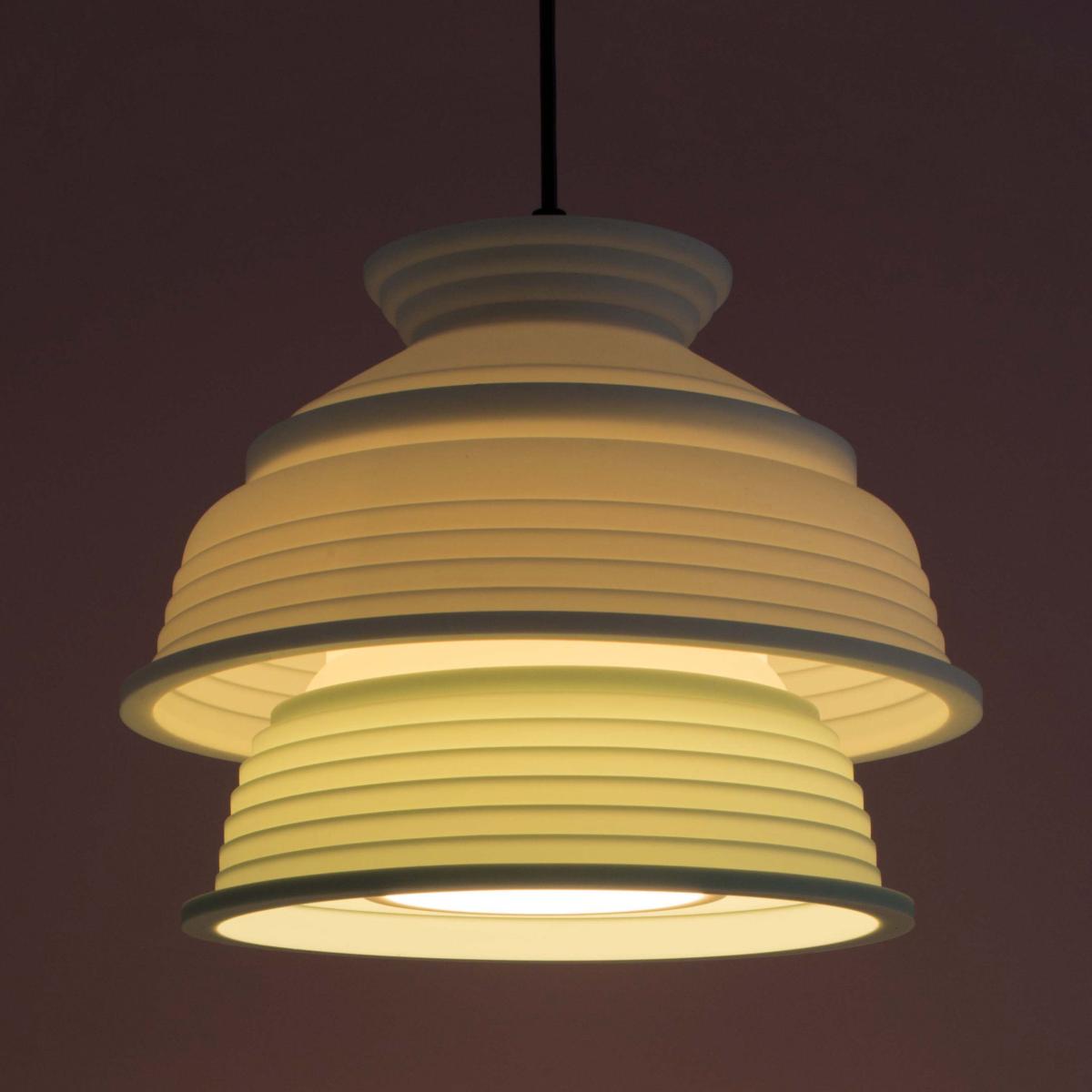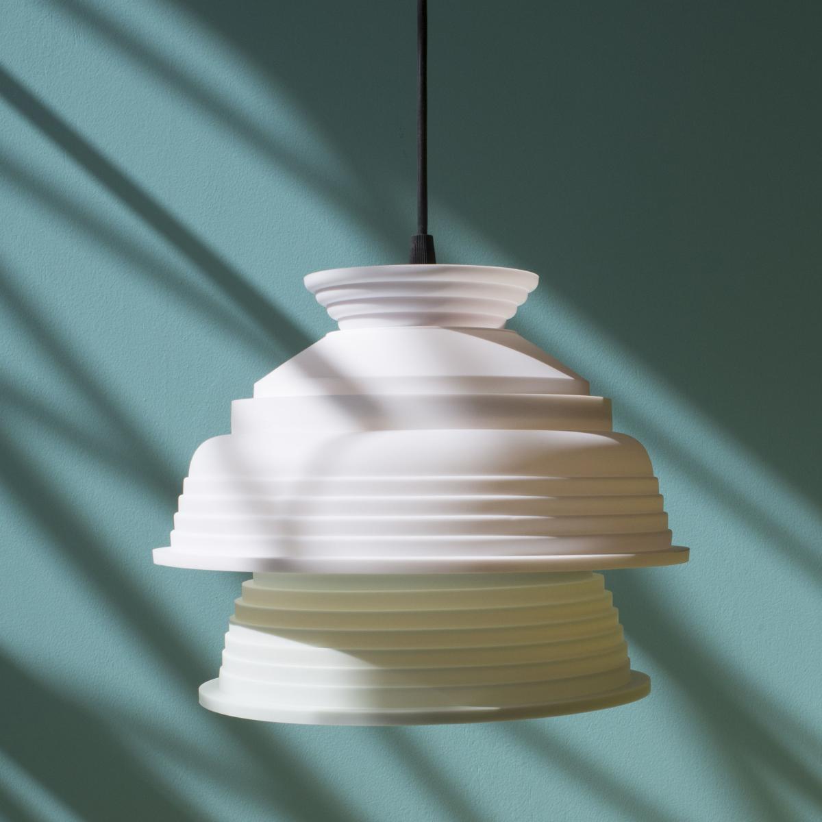 PLEASE NOTE. Lampshade sold on its own, without electrical system. The Shades lampshade is compatible with any socket with an E27 base. A compatible electrical system is sold separately (cable / ceiling fitting / socket set). Renowned co-founder of the Memphis movement, British designer George Sowden has continued his creative journey with his lighting series, "Shades". These modular, silicon lamps bear the geometric, colourful and bold style of their renowned creator. The Shades lamps are composed of colourful silicon lampshades with infinite combination possibilities. The simple geometric shapes are layered in a thousand and one ways, creating totem-like silhouettes. The rich, chromatic combinations highlight the play on layered volumes. The Shades lamps allow for countless configuration possibilities thanks to the modularity of their silicon components. The initial idea behind Shades came about in 2020, when George Sowden discovered the extraordinary potential of silicon, which optimally propagates light in a marvellously expressive way. Once the light is switched on, the material plays on transparency and colour, showcasing the textures of its surface and creating a stunning effect of depth. The colours light up, diffusing a vibrant yet soft and comfortable light. Plus, silicon is a non-toxic material, as well as being easy to clean, shock-resistant and known for retaining its aesthetic qualities over time. George Sowden: "Silicon sets Shades lamps apart even before they've been switched on, the colours and proportions are remodelled over use, diffusing a soft and comforting light."