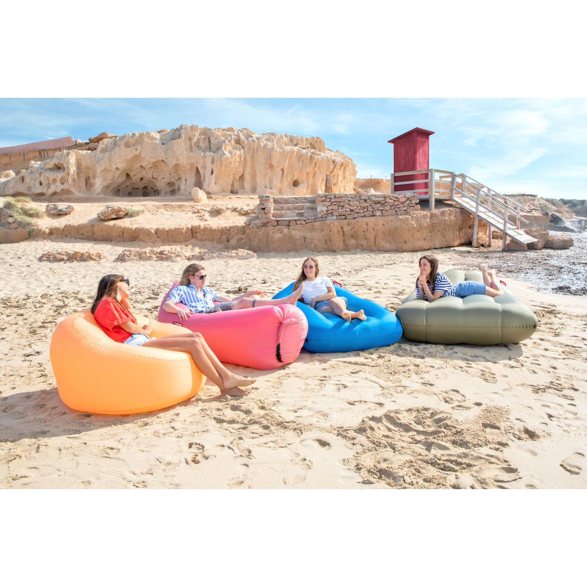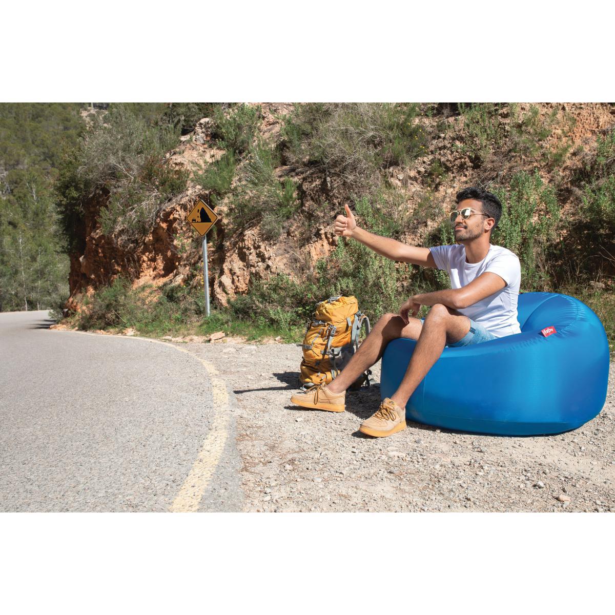 Already a cult in its own right, Lamzac inflatable furniture now has a new kid on the block: the Lamzac O chair. For use inside and out, this go-anywhere chair stands out for its great comfort and a revolutionary, really easy inflation system. Its round, refined design has a protective, voluptuous shell. To inflate it, there's no need for a pump: you just need to swing it to trap the air inside. Then you fold up the ends of the armchair, lock the clip and it's job done in just a few minutes! Very compact and light when folded, the Lamzac O chair is easily transported thanks to its shoulder bag (provided). It follows you everywhere so you can enjoy a seat that offers exceptional comfort wherever you go: in the garden, on holiday, at a campsite, on the beach, at a picnic, among friends, at a festival, etc. With its generous dimensions, this fabric armchair offers unparallelled comfort: a real cocoon of softness! With its nylon water-repellent covering, the Lamzac O chair can withstand humidity and can be set up in the garden, on a beach or terrace. Just be sure to store it indoors when not in use. The Lamzac O chair can support loads up to 200 kg. Delivered with its own carry bag, it can be worn over the shoulder, so you can take it with you on all your adventures.