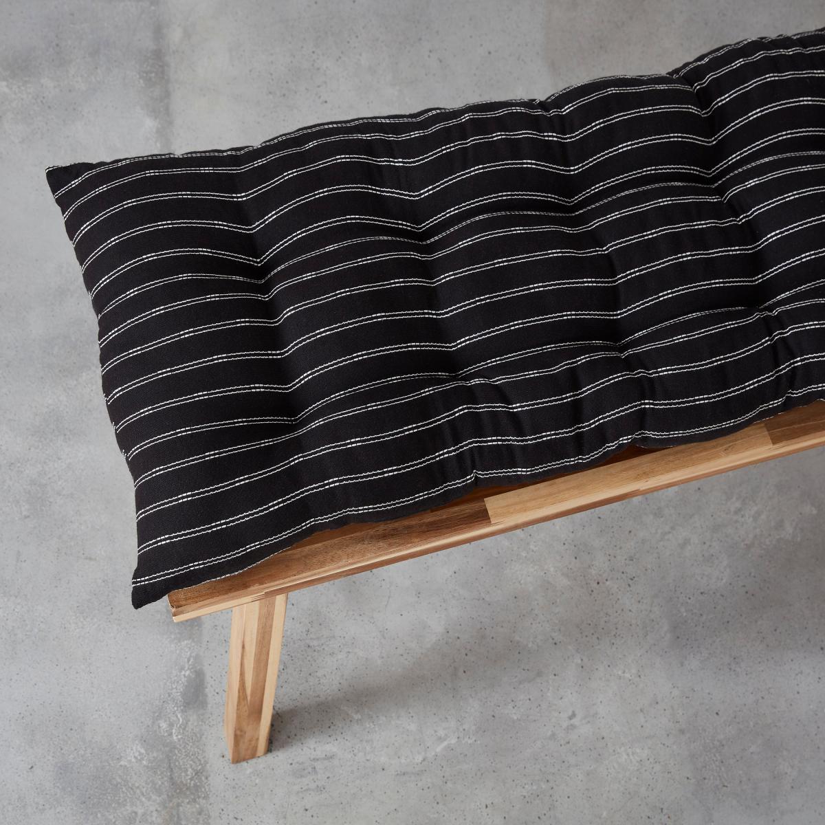 The Lana Black Bench Pad is a stylish and comfortable finishing touch to your dining bench. Made with a 100% cotton with a stripe patterned fabric, this bench pad is both a stylish and practical solution for a more cosy dining experience.