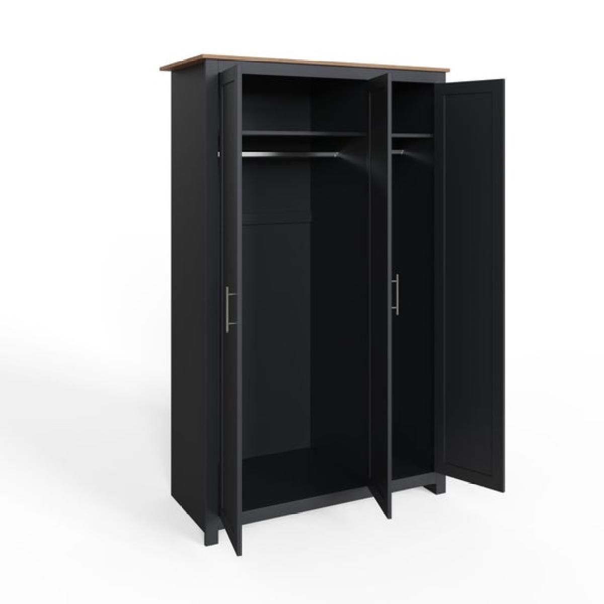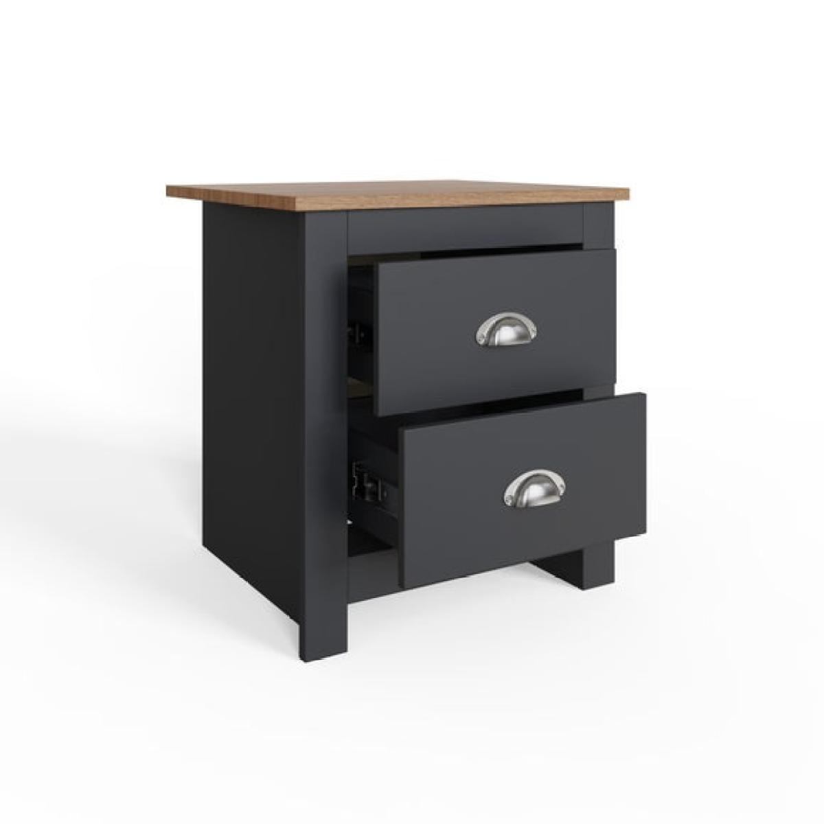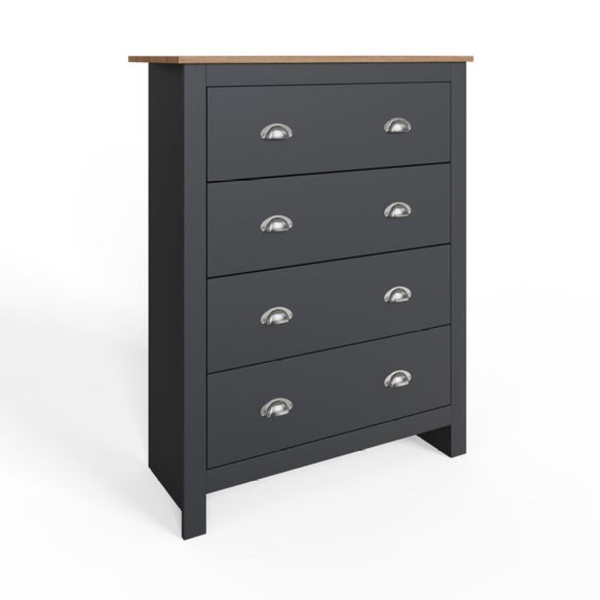 * Four piece set includes wardrobe, chest and two lamp tables * Oak-effect tops for added contrast * Hanging, drawer and surface storage * Brushed steel handles for a modern finish * Available in a range of colours The Lancaster 4 Piece Bedroom Furniture Set is a complete solution for stylish storage. With shaker-inspired detailing and a coordinated finish, it brings a polished look to any bedroom. This set includes a three door wardrobe, four drawer chest and two lamp tables, offering a practical mix of hanging space, drawer storage and surface area. Brushed steel handles and oak-effect tops add a refined touch to the clean lines. Designed to suit a range of interiors, it’s available in multiple colour options. A smart way to keep everything in its place.