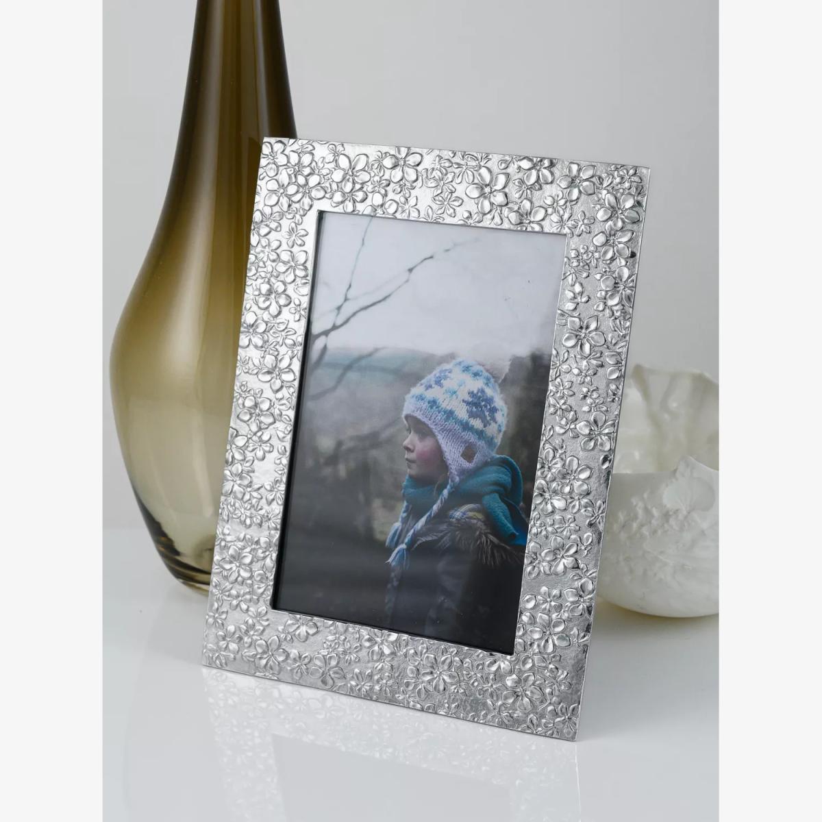 Handmade in England by Lancaster and Gibbings, this cast pewter frame has a pretty floral pattern inspired by the gardens in the North Devon village of Goodleigh.