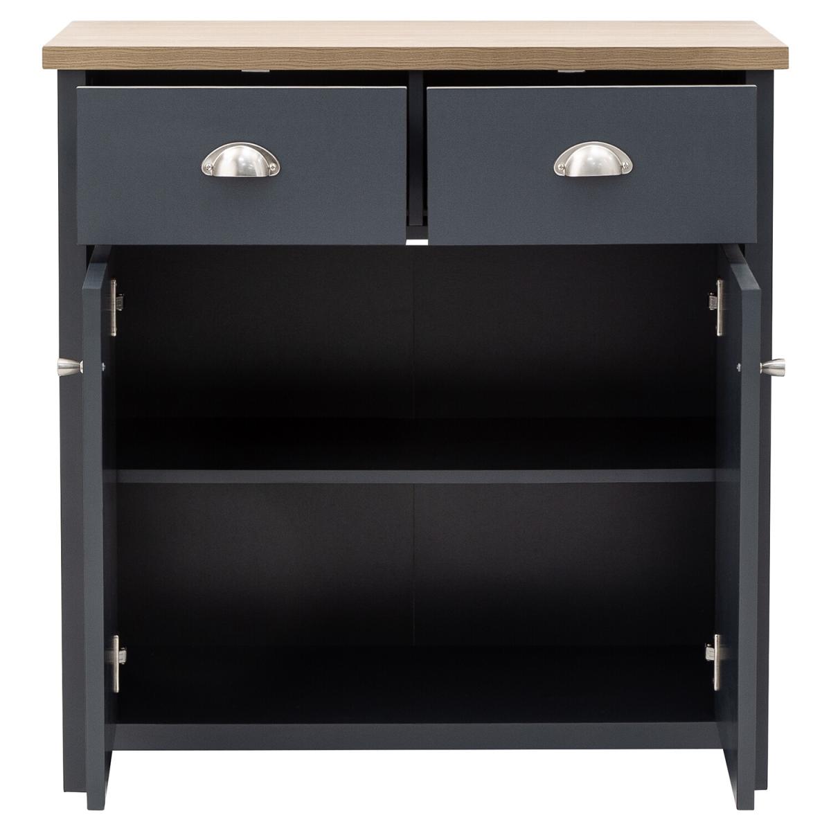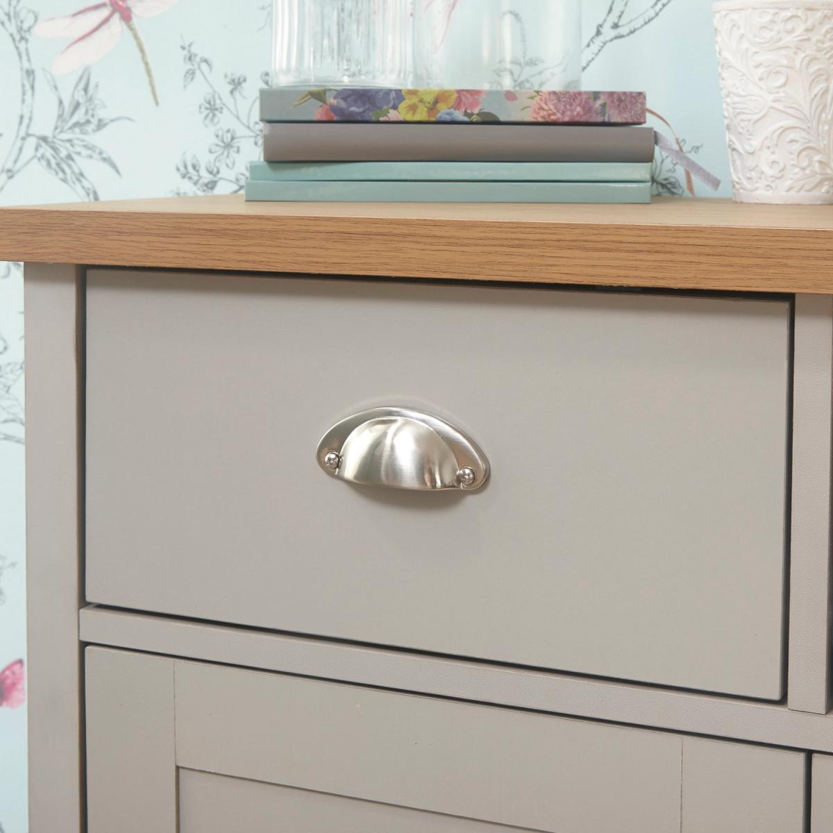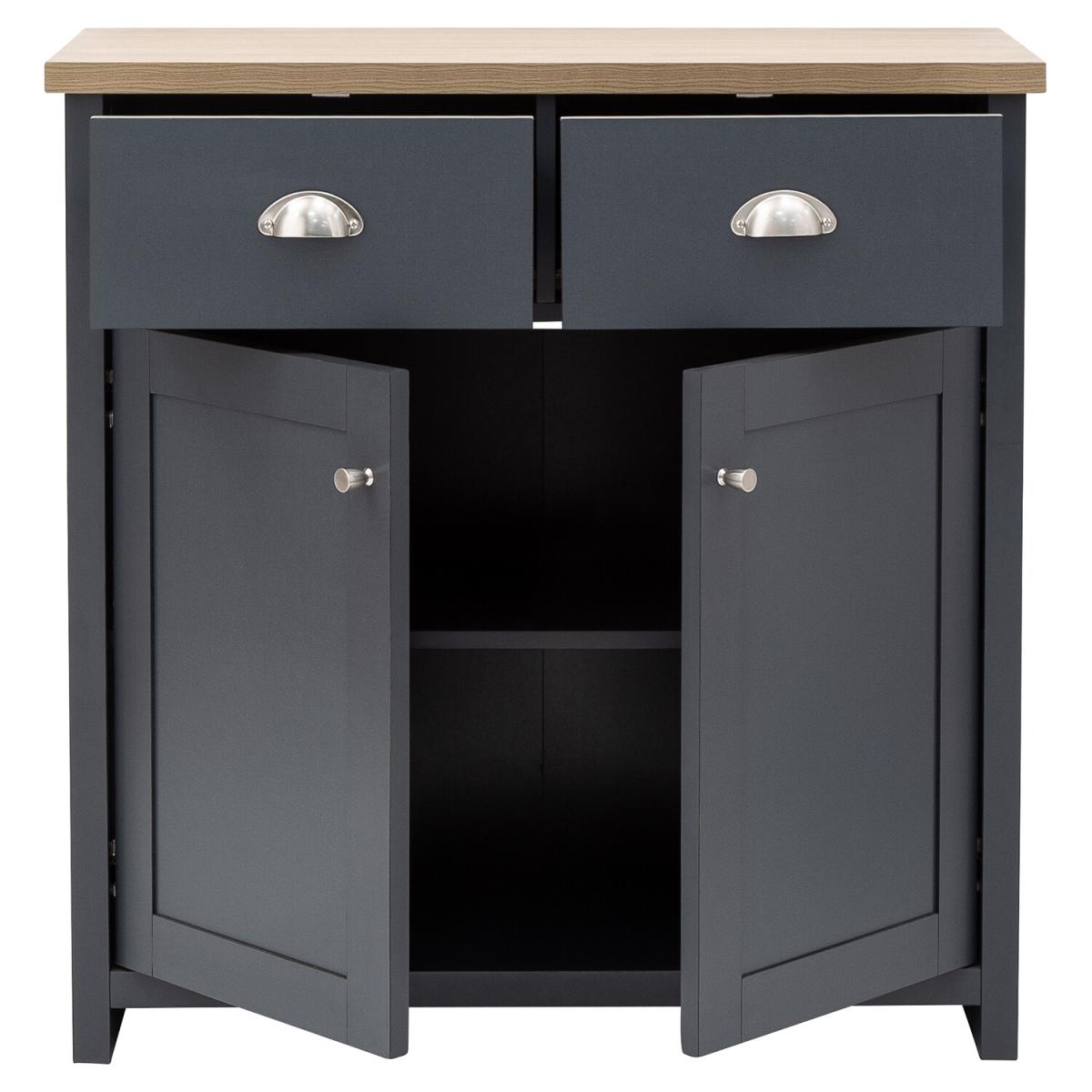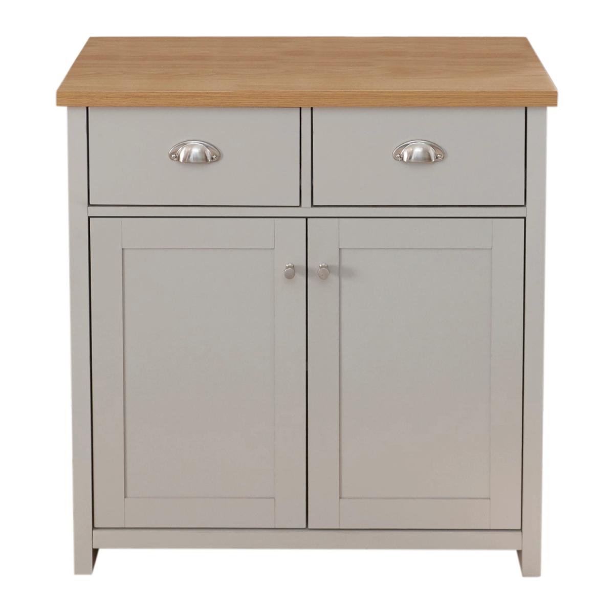 An elegant storage solution for the living or dining room, this Lancaster Compact Sideboard is a great way to keep your home looking neat and tidy. Featuring a beautiful matte grey finish and oak veneered top, this sideboard is designed with two handy drawers and a spacious double door cupboard underneath, great for storing all of your most beloved items.