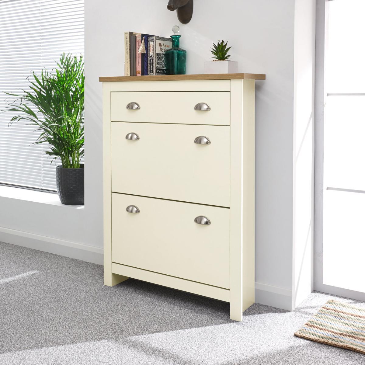 The perfect mix of practicality and style, this Lancaster Cream Shoe Drop is complete with two shoe rack spaces and is perfect for neatly storing away footwear. Available in either a white or grey colourway, and featuring a contrasting oak effect top, this product is as stylish as it is practical. Please note, unfortunately we cannot deliver this item to Northern Ireland or the Channel Islands.