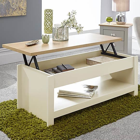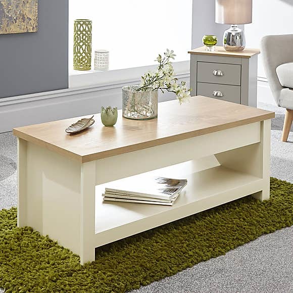 Designed in a contemporary country styling and finished in a choice of grey or cream colourways, the Lancaster lift-up coffee table would be a stylish addition to any living space. This self-assembly coffee table features an open shelf area and a lift-top design, allowing the top to extend up to provide a higher surface, whilst revealing another shallow storage area beneath. Please note, unfortunately we cannot deliver this item to the Channel Islands.