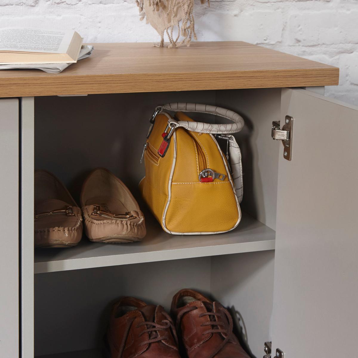 I’m a fan of this grey shoe cabinet for its clean-lined design and oak-effect top, which slots neatly into Scandi, coastal or modern farmhouse schemes. Its muted finish means it won’t overpower a hallway, yet the roomy double-door section tucks away up to a dozen pairs of shoes. For styling, place a slim runner underneath and perch a small wicker basket on top for keys or gloves. If space allows, mount a row of simple hooks or a mirror above to create a practical entryway zone, or add a tailored cushion on the lid to turn it into an impromptu bench.