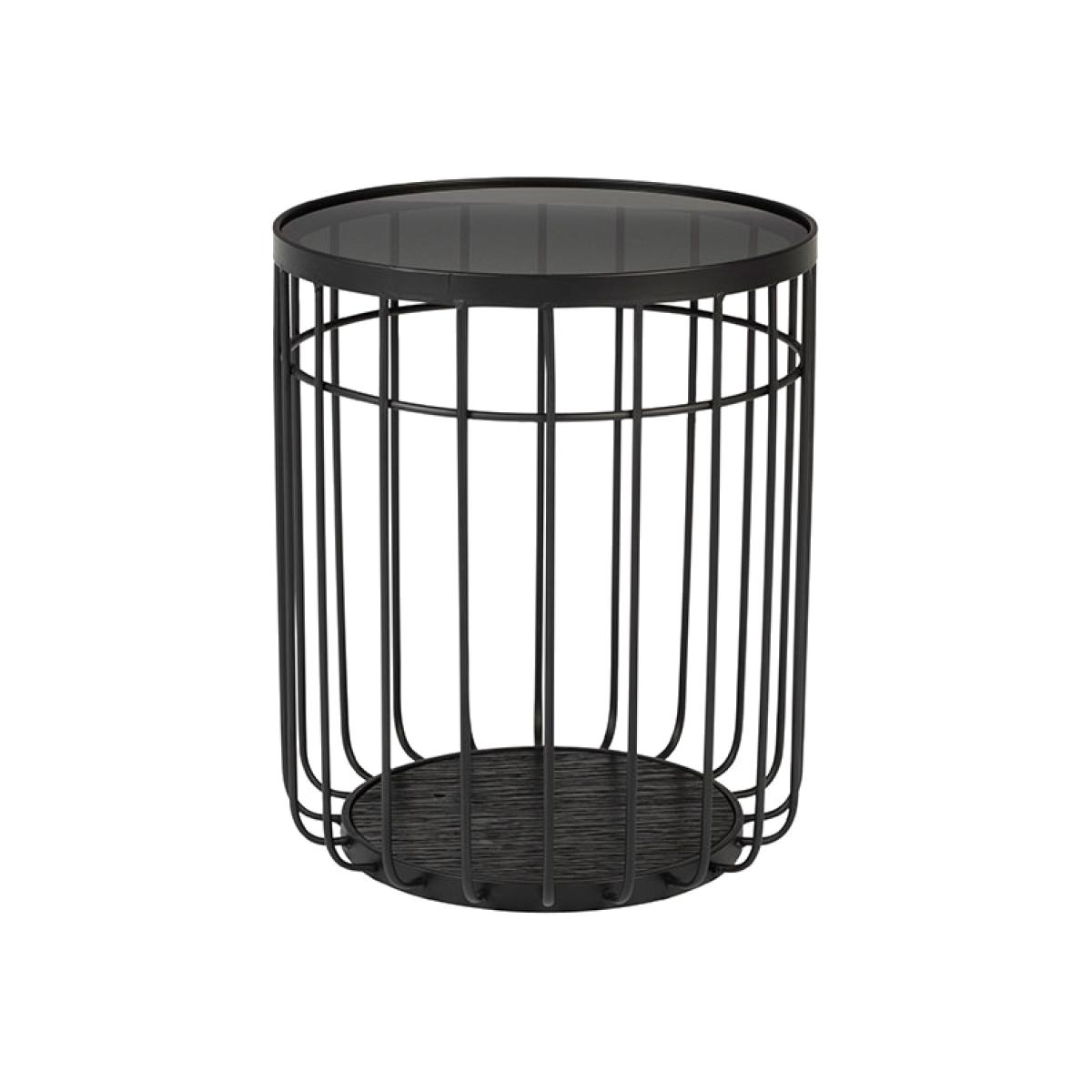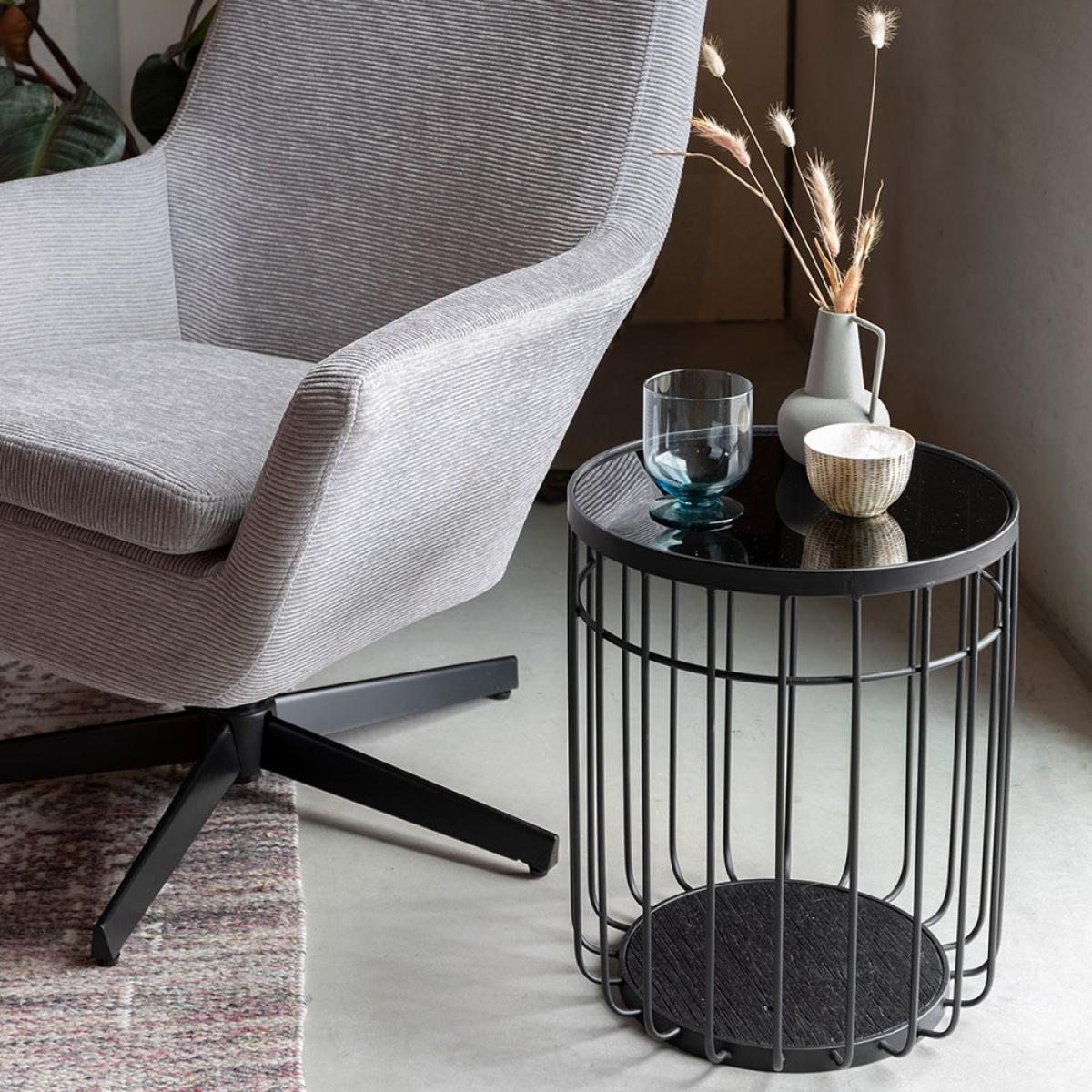Don't just get any old side table for your interiors; make a feature of this sitting room staple and settle on the Lance Side Table! Accompanying your favourite seating, keep drinks and snacks within reach or style with candles and watch the flames reflect on the tempered glass top. Crafted from powder coated iron with a wooden base, all finished in a bold black - the industrial caged side table keeps things contemporary. Stack a selection of novels in the base, ready and waiting for your next break.