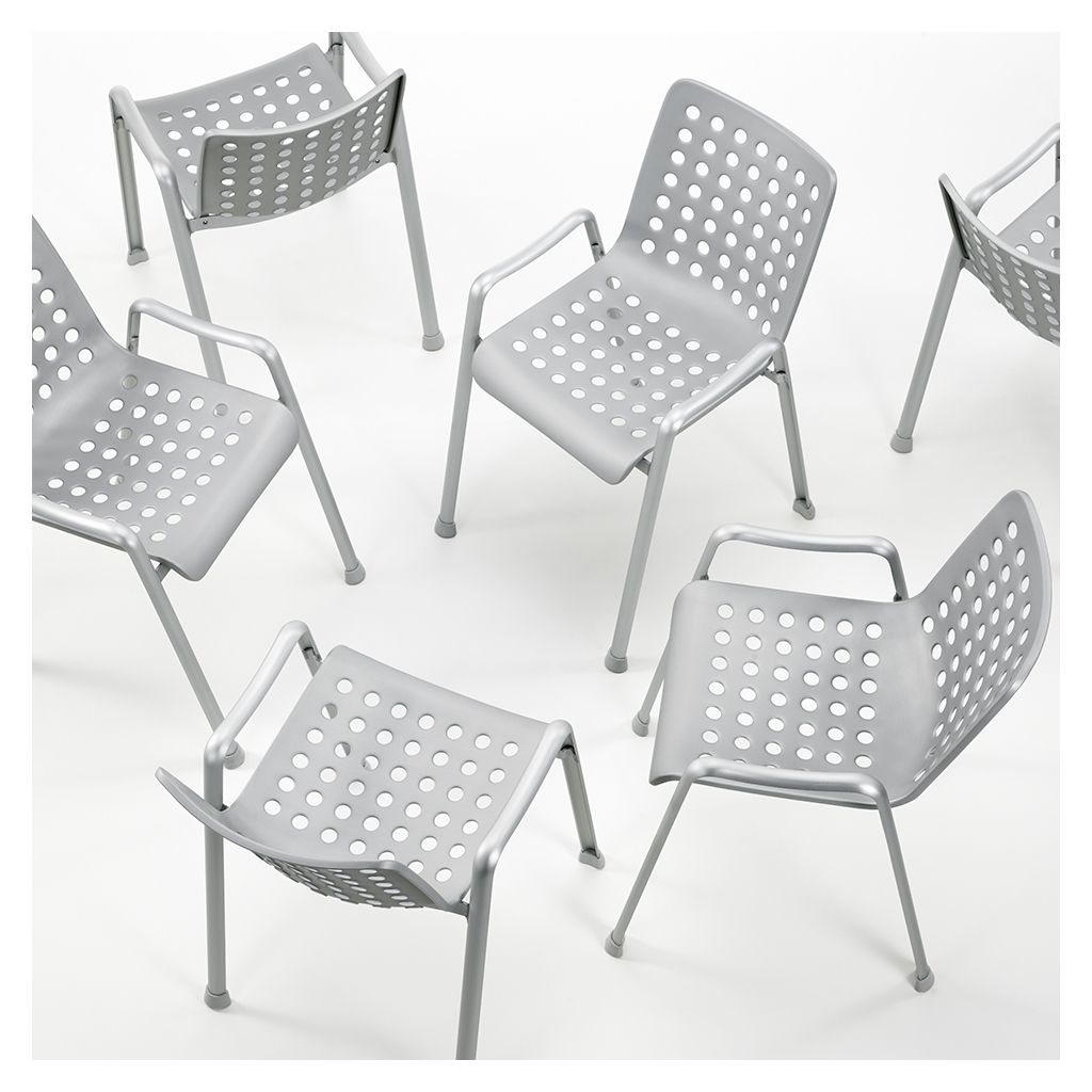 Designed by Hans Coray for Vitra in 1938, the Landi Chair in matte anodised aluminium is perfectly suited to both indoor and outdoor use. Originally designed for the 1939 Swiss National Exhibition, the lightweight and stackable Landi Chair is lauded for its technical innovation and optimal use of materials. Contemporary and striking, this classic design would make a fresh addition to any space. Closely associated with key Dadaists and the Concrete Art movement in Zurich, Hans Coray designed the Landi Chair at the suggestion of the architect Hans Fischli. From then onwards Coray continued to create elegant yet practical furniture for the modern home.