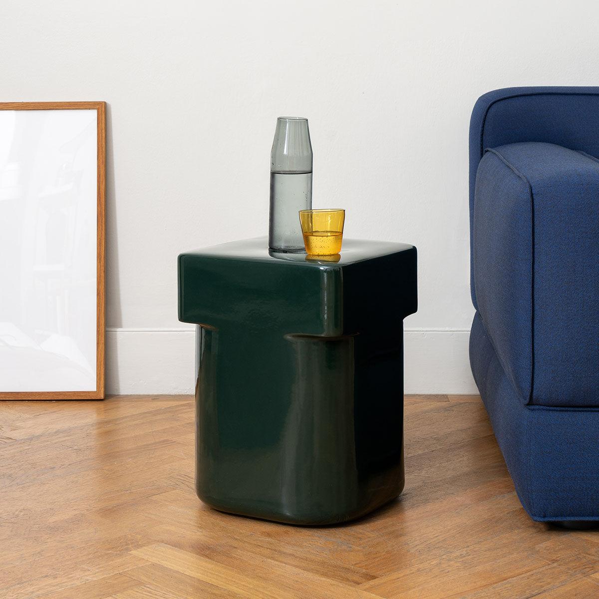 Landmark End table ceramic green / Hand-made - 32 x 32 x H 44 cm - NINE