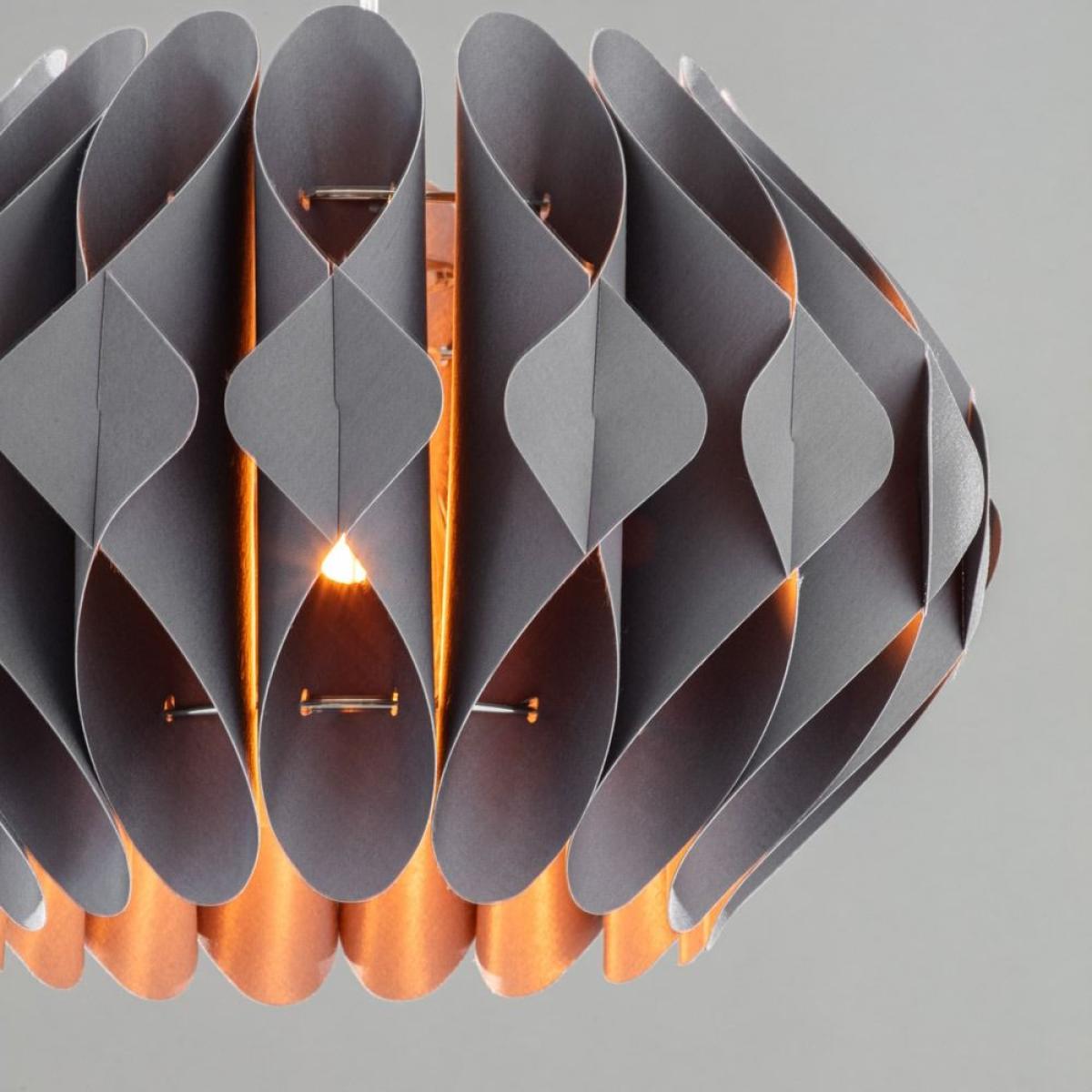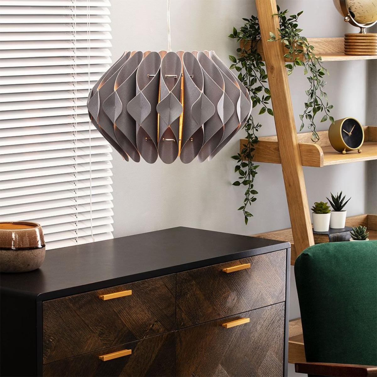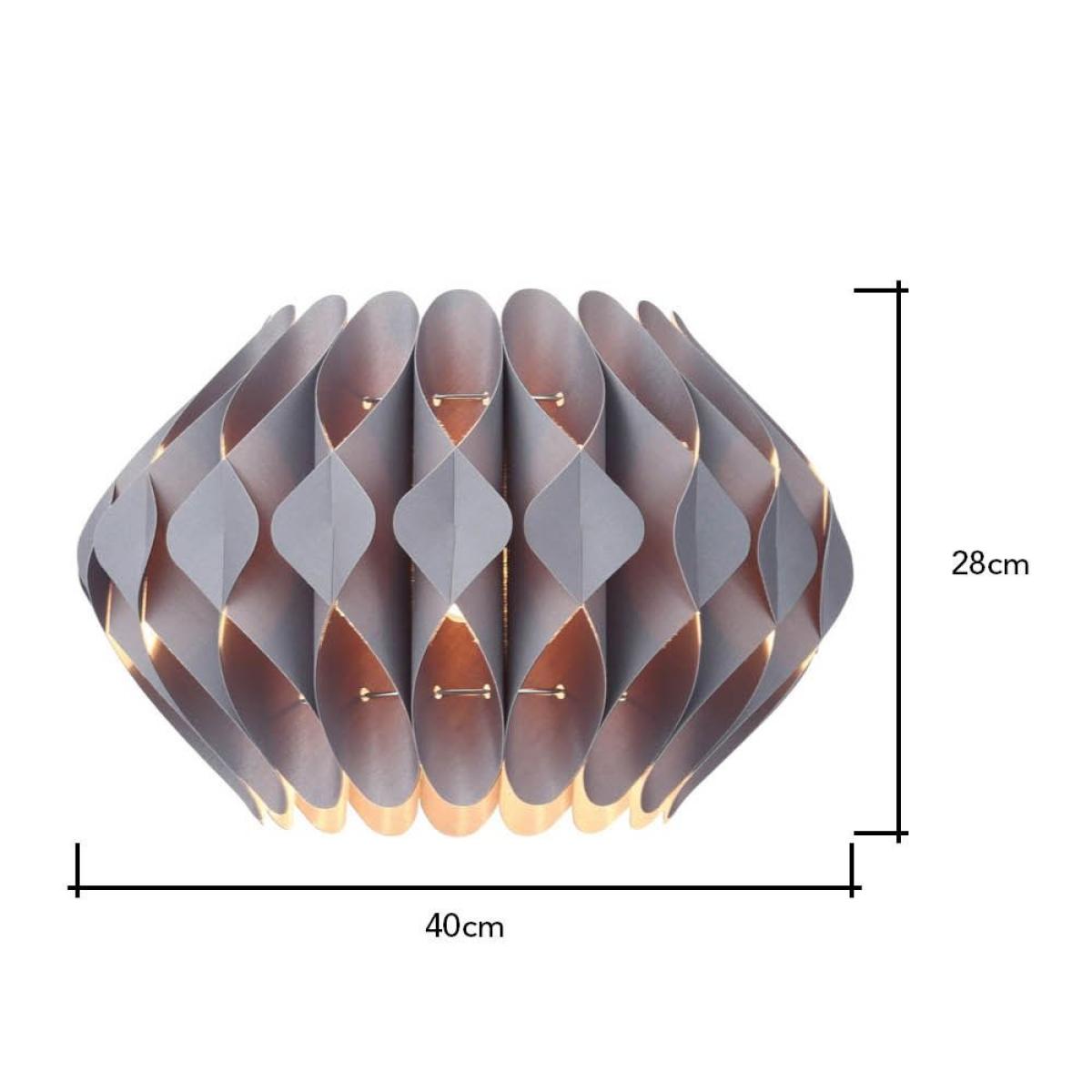 The Landon Easyfit Shade in Grey is a beautiful, modern addition to your home’s interior lighting arrangements, bringing a contemporary, geometric style that creates an abstract look in any room. The grey fabric is wrapped into a unique design, creating a sense of interest with your lighting and diffusing the light within through an interesting pattern, letting off a beautiful, warm glow that provides a calming atmosphere in any living room, bedroom or dining room.