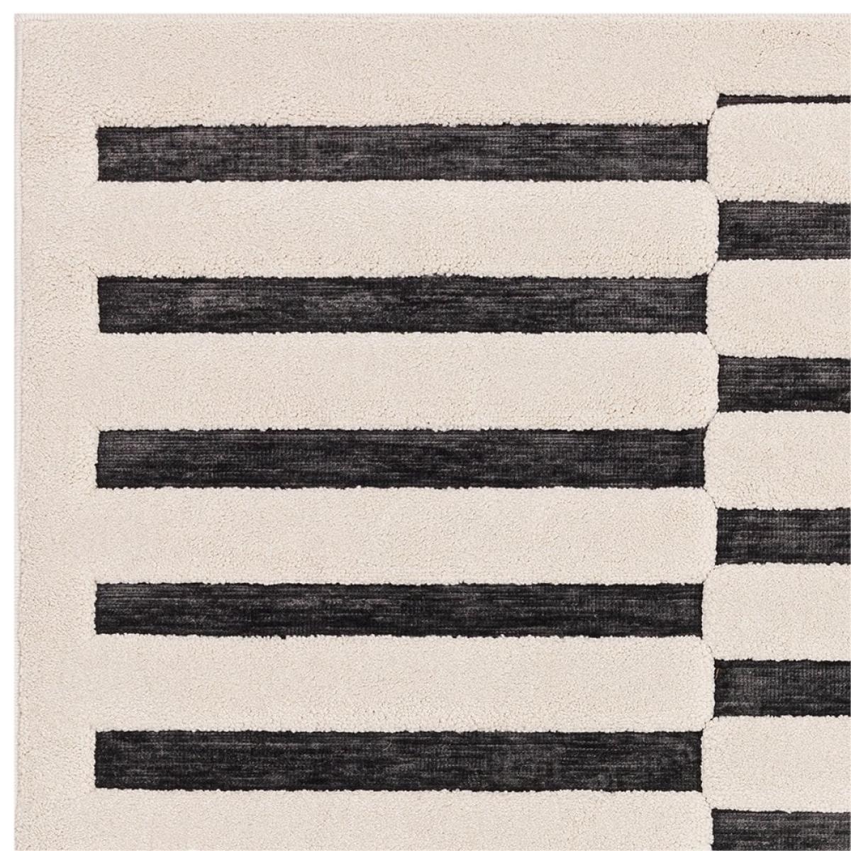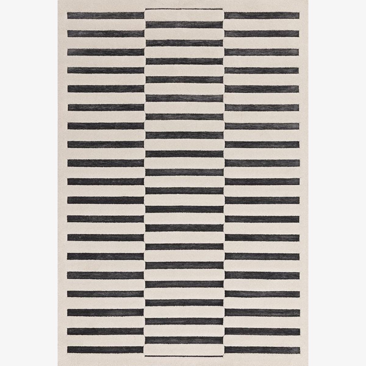 I really like this one for adding a modern, graphic element to a space. The contrast of charcoal and ivory makes it versatile enough to work in both neutral and colour-pop interiors. It’s ideal for open-plan living areas or bedrooms where you want a statement piece without overwhelming the space. Styling tips include layering with textured cushions or throws to soften the bold pattern, or placing it under a coffee table to create a defined seating area. It’s practical too-while it’s visually striking, its low pile makes it easy to clean and maintain, perfect for high-traffic areas or homes with pets and children. Overall, it’s a chic addition that combines contemporary style with functional design.