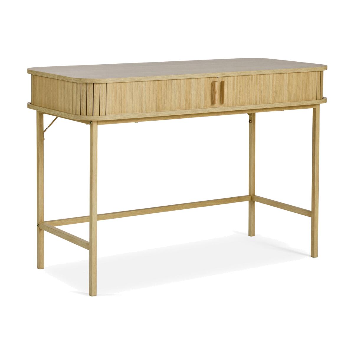 Inspired by 18th-century craftsmanship with a fresh Scandi twist, the Landos makeup table effortlessly marries heritage design and contemporary simplicity. The slatted doors bring a subtle depth to any space, whilst the minimalist silhouette and curved edges keeps things airy and understated. No room for cupboard doors and drawers? The sliding doors make this bedroom desk the perfect storage solution for tight spaces, bringing you space-saving functionality without sacrificing style. They glide effortlessly round the back of the hallway table on the discrete runners, giving you easy access to the two internal storage compartments. Rest assured your items are secure thanks to the robust metal frame and anti-tip strap. Coordinate your home in timeless style with the Landos collection.