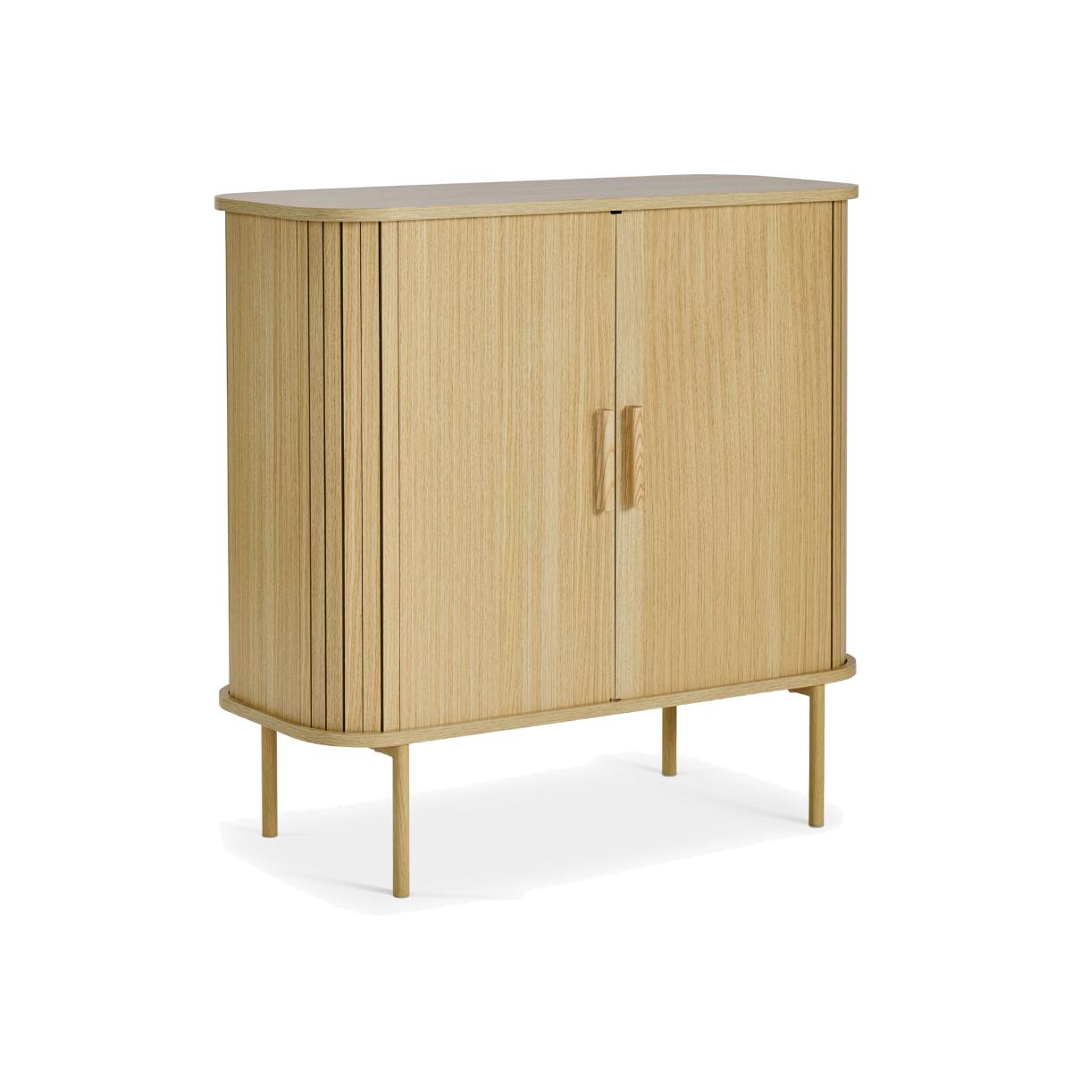 Inspired by 18th-century craftsmanship with a fresh Scandi twist, the Landos side board effortlessly marries heritage design and contemporary simplicity. The slatted doors bring a subtle depth to any space, whilst the minimalist silhouette and curved edges keeps things airy and understated. No room for cupboard doors and drawers? The sliding doors make this living room sideboard the perfect storage solution for tight spaces, bringing you space-saving functionality without sacrificing style. They glide effortlessly round the back of the living room cabinet on the discrete runners, giving you easy access to three internal shelves. Rest assured your items are secure thanks to the robust metal frame and anti-tip strap. Coordinate your home in timeless style with the Landos collection.