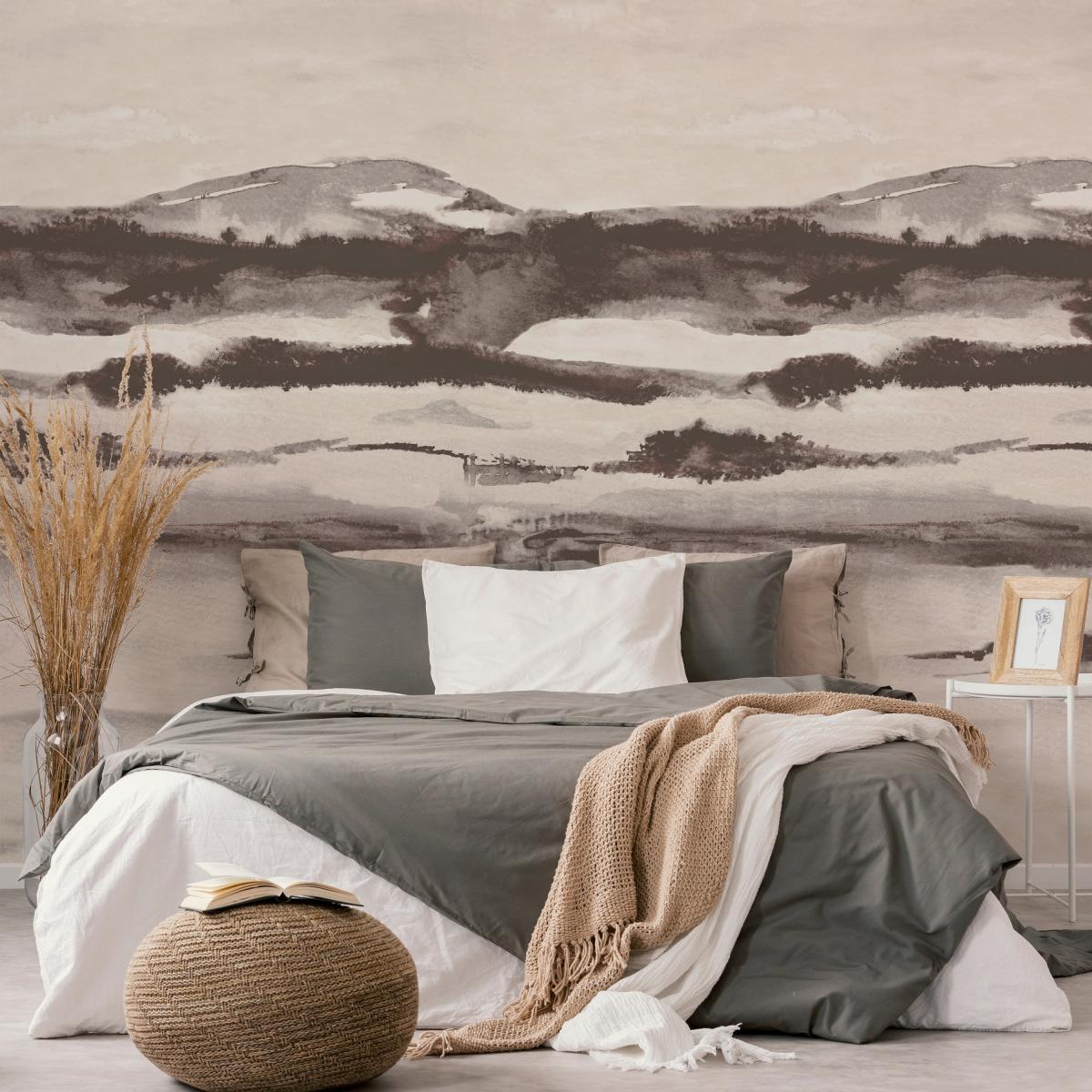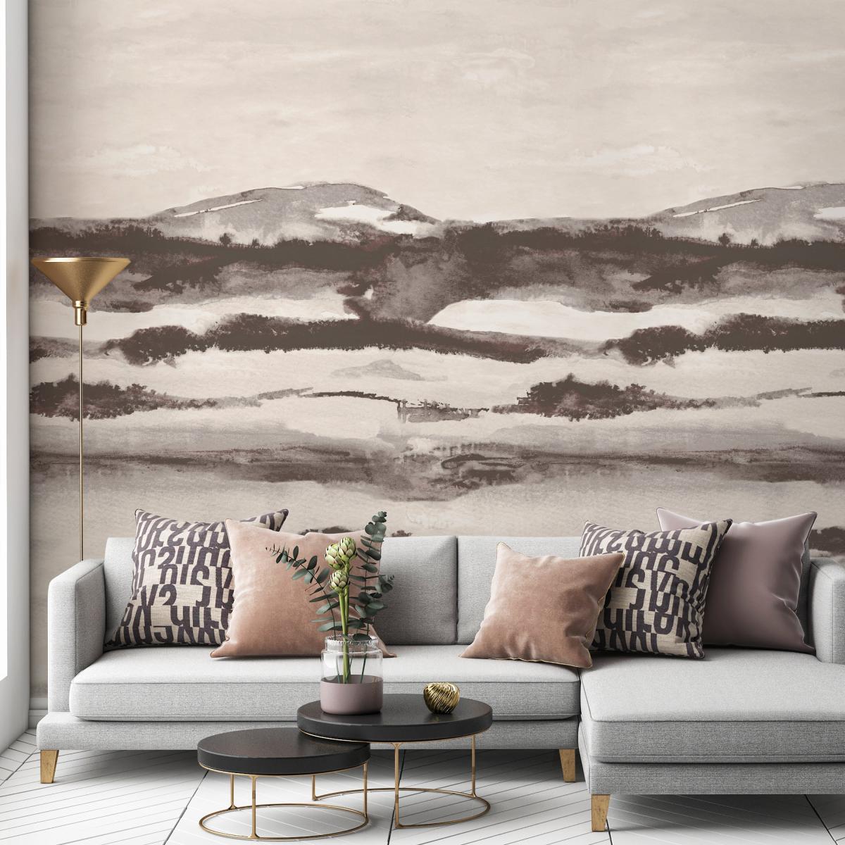 I really love the landscape mural - it adds a calming, natural element to any space. It works particularly well in living rooms or bedrooms where a tranquil, nature-inspired backdrop can promote relaxation. The monochrome palette makes it versatile, so it pairs nicely with soft pastels or muted tones for a sophisticated look. For styling tips, keep the rest of your decor minimalist to let the mural take centre stage, and consider adding textures like woven throws or linen cushions for added depth. This mural is great for creating an understated statement wall, giving your interior a sense of space and serenity without overwhelming the room.