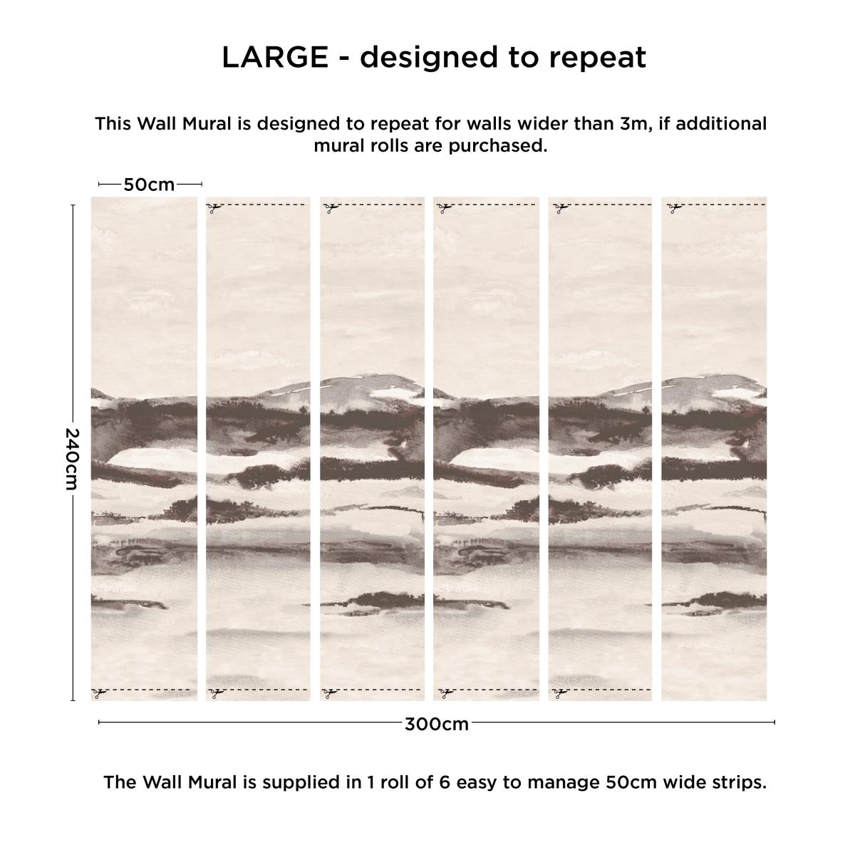 This beautiful on-trend mural features a zen natural landscape print and a smooth matt finish to bring a sense of calm to any room in your home. Easy to paste on the wall, this mural has been crafted with nonwoven fabric and can be sponge cleaned. Hang this wallpaper using the paste the wall application method for easy placement and removal. For more information on applying your wallpaper, take a look at our handy. Wallpaper buying guide. Repeat Pattern Information:. Medium: Does not repeat. Large: Repeats after panel 6. Extra Large: Repeats after panel 7.