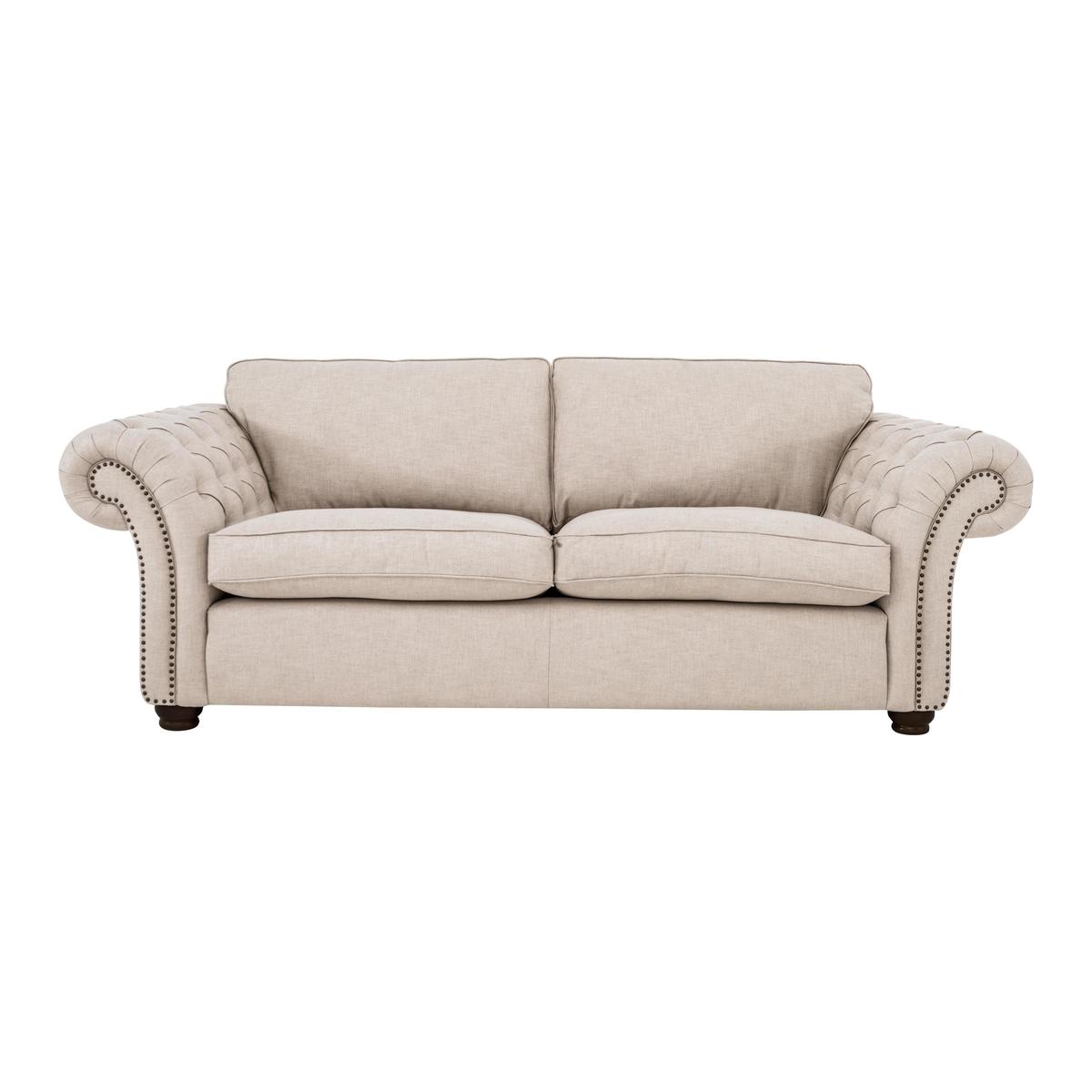Spoil yourself, and your family and friends, with the Lanesborough three seater classic back sofa. This roomy sofa has a timeless elegance and sophistication that suits both modern and traditional homes. We love the buttoned, rolled arms defined with character studding that echo the Chesterfield style and the traditional wood feet in a black or light finish. British made to a high quality, the Lanesborough spoils you with a sprung seat and back, with fibre seat cushions and fibre filled back cushions. If you’re not feeling spoilt enough by all the comfort, you will by the wide choice of colours and fabrics, including an opulent velvet and the glamorous new Lara fabric which has a luxe shimmer thread running through it. For more upholstery options and an upgrade to foam with a fibre wrap, or to choose the sofa without studding detail on the arms please call 0800 804 8879. Make your sofa even more luxurious if you wish, with additional scatter cushions or bolster cushions, available to buy separately. Removable arms mean this sofa is easier to deliver into your home. The Lanesborough three seater classic back sofa is part of the chic and stylish Lanesborough collection.