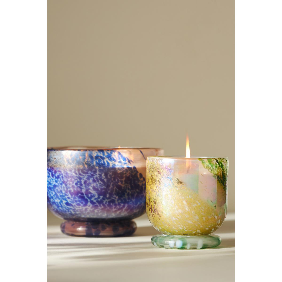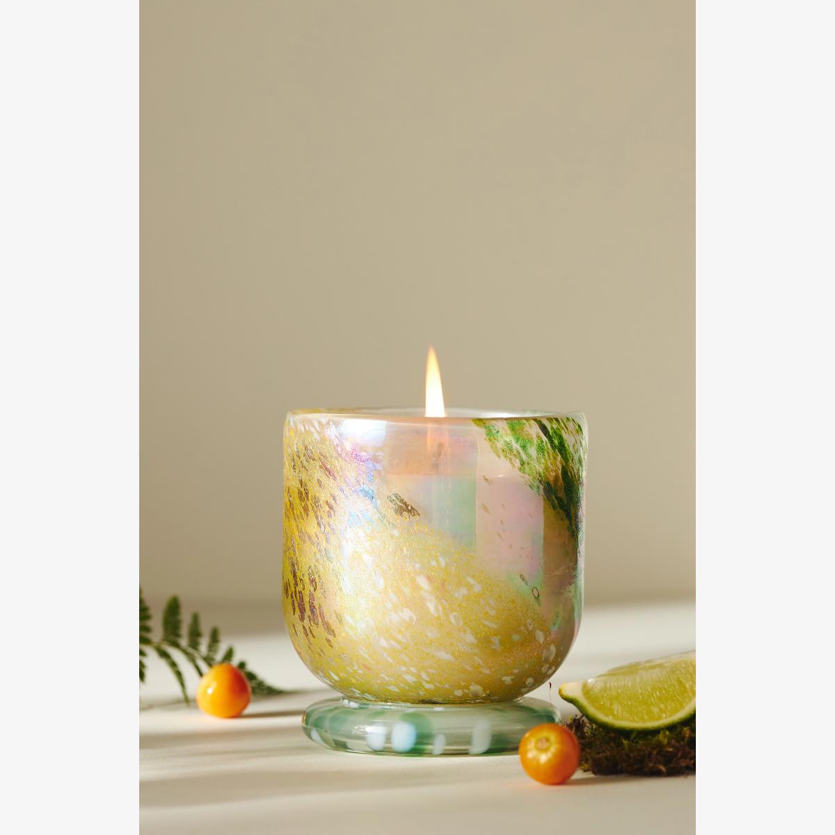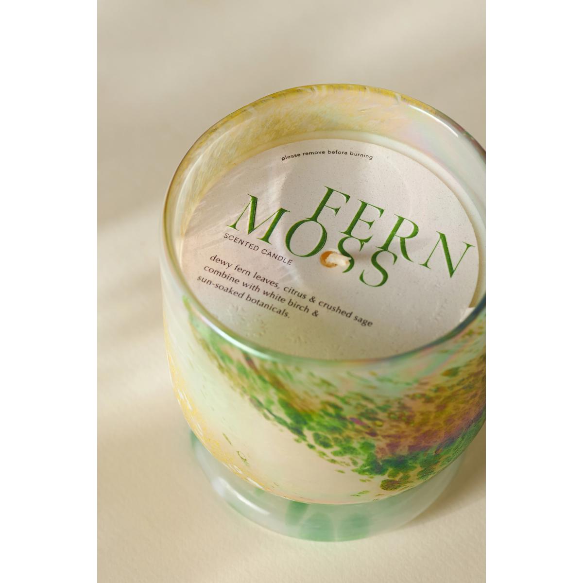 Housed in an elegantly ethereal cheena glass vessel, enjoy the soft and warm glow of this dancing candlelight. **Fern Moss (Fresh Herbal)**: A botanical fusion of dense woodland foliage, leafy elm, and white birch lifted by sun-dappled citrus over fresh moss, dewy fern, and herbaceous lavender. *For the best burn experience, keep the following in mind:* * The first time you light your candle, allow it to burn until the wax pool melts all the way to the edge; for a larger candle, this may take several hours. Wax has "memory," so if it is extinguished with a partial pool, that will prevent a full, even pool from forming in the future. * Trim your wick each time you light the candle, removing any "bloom" from the previous burn. We recommend lighting a wick that is 1/4-1/2" in length. * Ensure that your candle is placed on a heat-safe surface. * Do not allow wick trimmings, dust, or other materials to accumulate in the wax pool. * To ensure safety and longevity, be sure to check the bottom of your candle for additional instructions, including details on when to discontinue use. * By Anthropologie * 41-hour burn time * Hand-poured sasol wax blend; fil-tec candle wick * Glass vessel * Imported