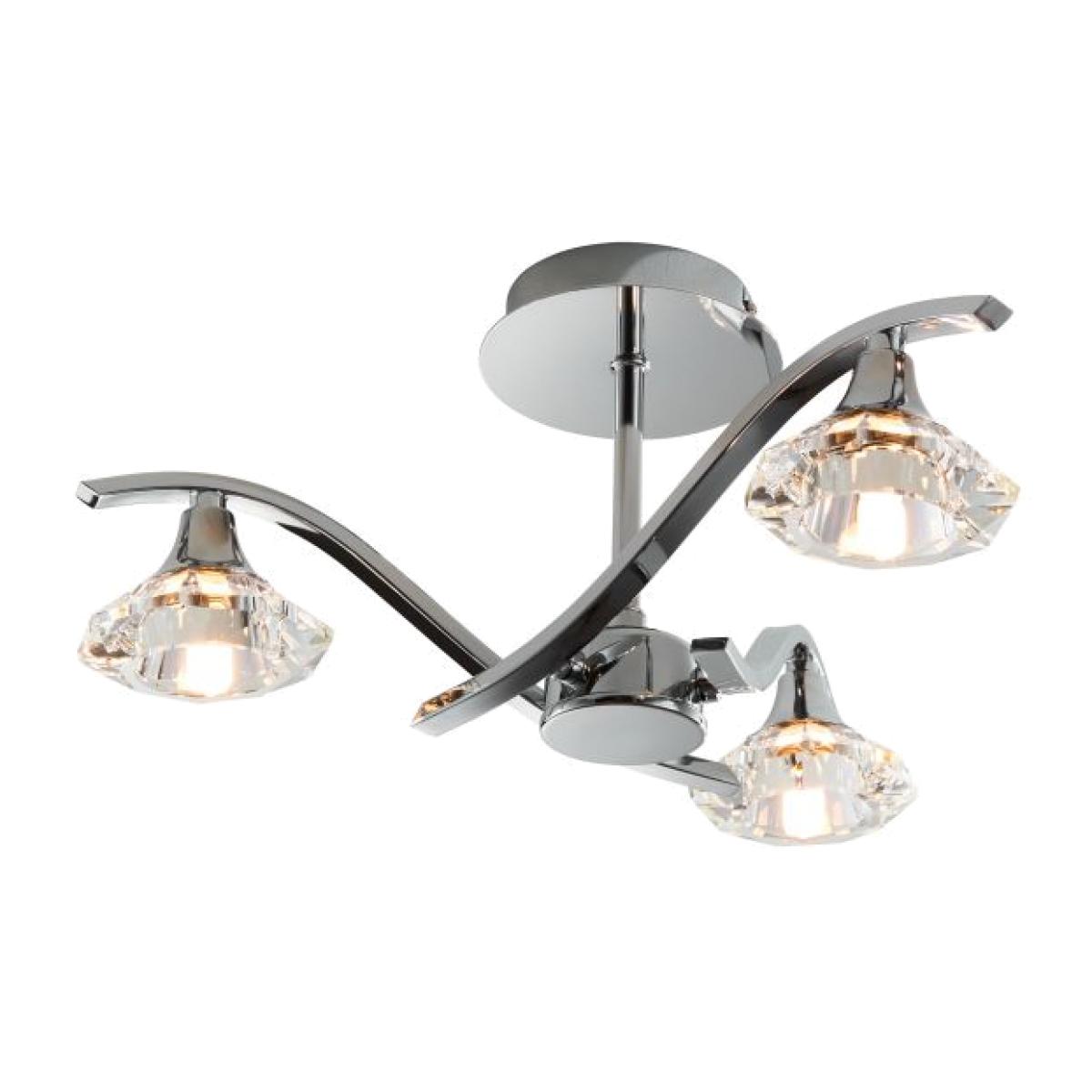 This 3 light semi flush is finished in chrome effect with clear crystal shades. This fitting is dimmable and suitable for use with LED lamps. Other finishes and ceiling, wall, table and floor options also available.