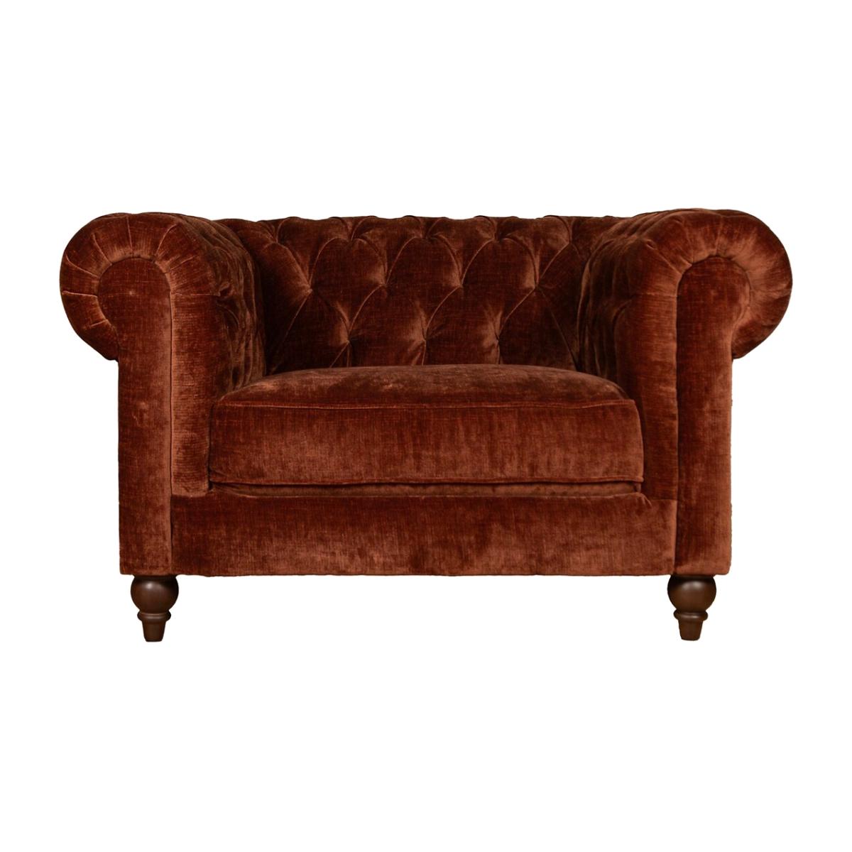 The Chesterfield style is timeless – and the Langford armchair brings the classic design right up to date. Think deep button tufting, rolled arms and generous cushioning, crafted in vintage velvet or premium New England leather. Perfect for adding character and charm to any living room, the Langford effortlessly combines heritage style with modern comfort. Product Details • Upholstered in Vintage Velvet - a stunning high pile velvet with a luxury look and feel • Deep button tufted back • Traditional rolled arms • High performance sprung pocket foam seating encapsulated in foam and polyester wadding. • Fixed foam backs for greater support. • Serpentine seat springs with silent wire • Solid wood walnut foot • 15 year manufacturers frame warranty (subject to terms and conditions)Product Composition• Fabric - Luxury Velvet (100% Polyester)• Seat Fillings - Foam• Back Fillings - Foam• Feet - Solid Wood• Frame - Timber and composite board Product Dimensions• Overall width: 130 cm• Overall depth: 100 cm• Overall height: 78 cm• Seat height: 48 cm• Seat depth: 65 cm• Seat width between the arms: 69 cm• Back height (from base): 78 cm• Arm height (from floor): 78 cm. Please remember to measure your available space before ordering to be sure your sofa will fit. Don't forget to measure accessways and corners, and consider any obstacles. Packaged DimensionsL17. 0 cm x W104 cm x H82 cm, Weight 45 kg. This product will be dispatched by one of our trusted suppliers. You’ll be contacted by their selected courier about your delivery. Your product will be delivered to your room of choice. Feet may be assembled on arrival