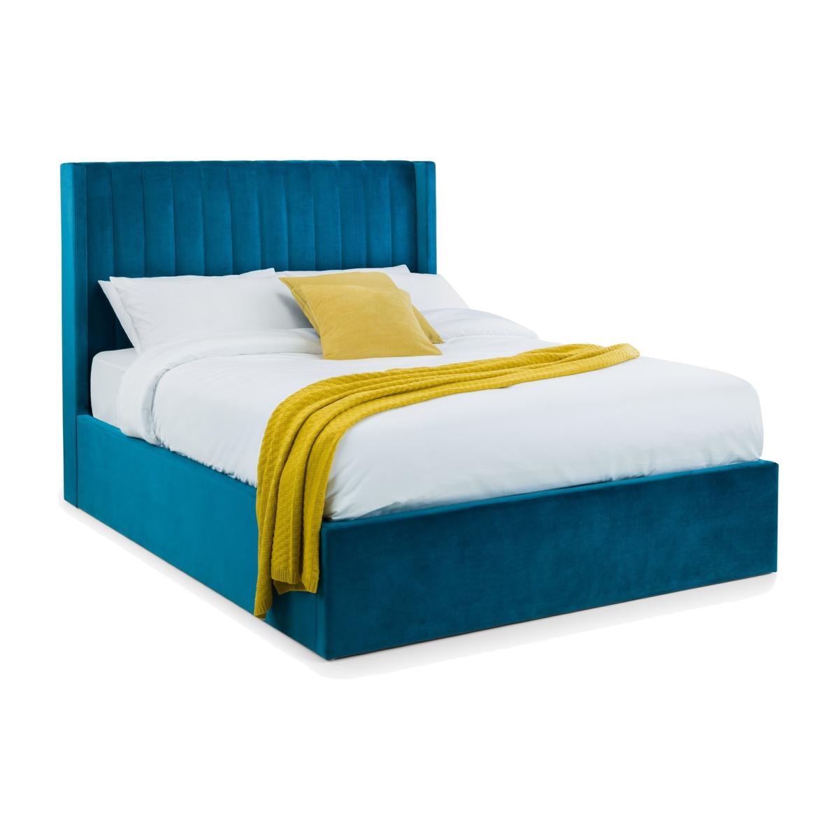 Bellini Wide Curved Winged Upholstered Soft Velvet Bed Frame - Blue / King