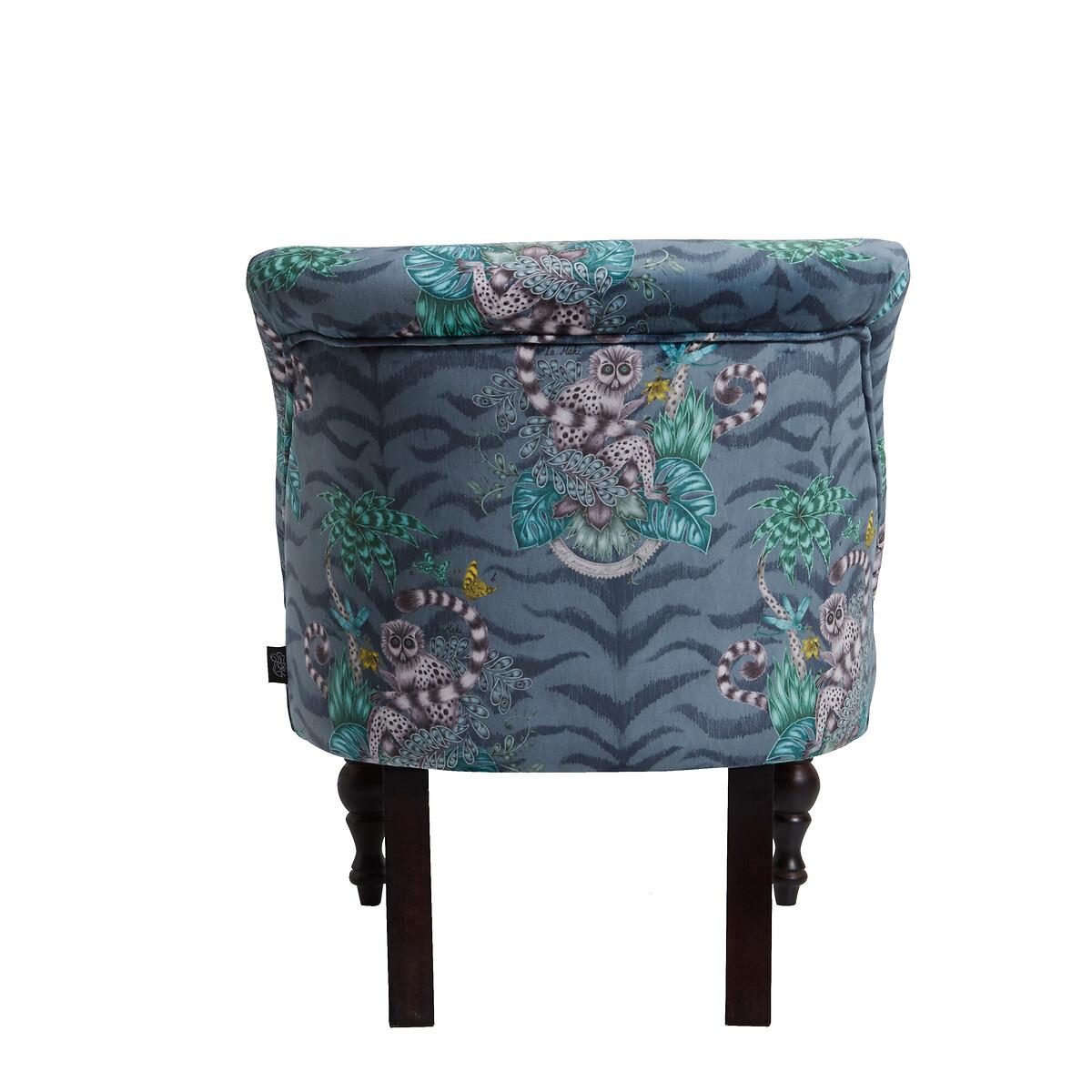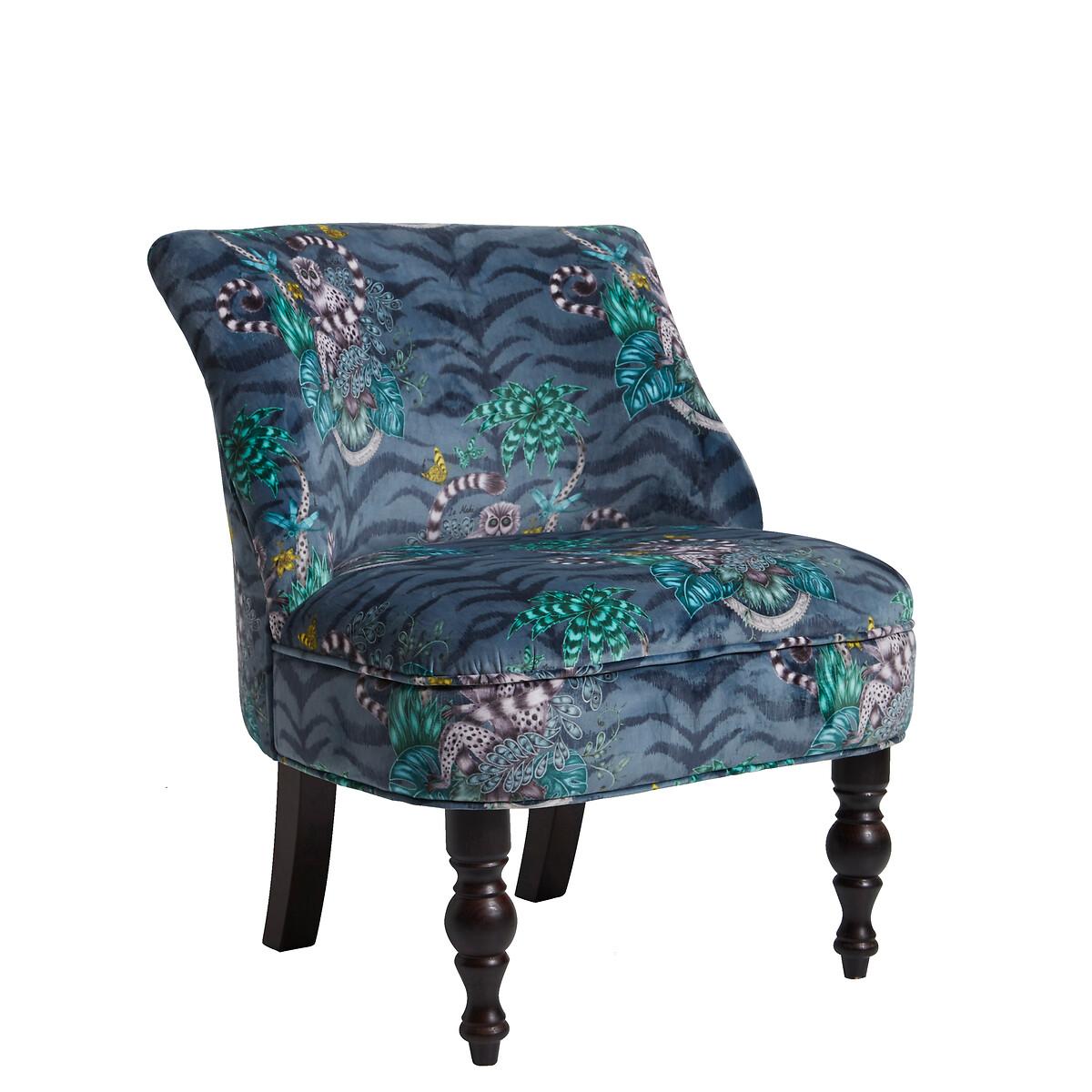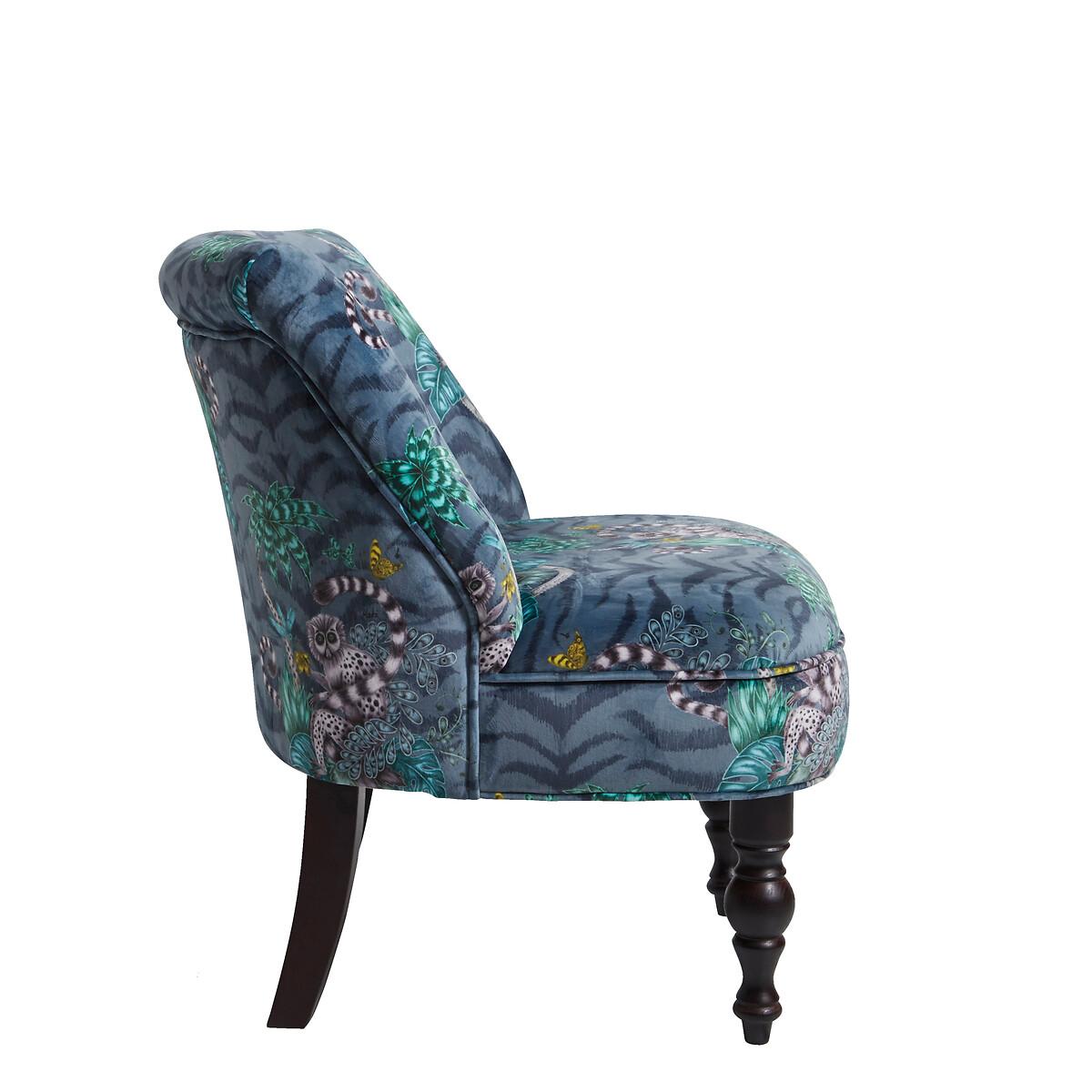 Featuring a curious ring-tailed lemur surrounded by palms and foliage, this is sure to be a conversation starter! In rich navy velvet, this chair would make a sophisticated yet playful statement. Product Details Velvet upholstery Foam and fibre filling. Solid beech legs. Wooden frame Sponge clean onlyComposition. Fabric- 100% Polyester, Legs- 100% Beech Wood, Filling- 100% FR Foam. Product Dimensions - 69 cm x62 cm x75 cm. Product Weight - 15 KGPackage Dimensions - 70 cm x 70 cm x 70 cm. This product will be dispatched by one of our trusted suppliers. You’ll be contacted by their selected courier about your delivery. Please note that this item cannot be delivered to the Offshore Islands, Northern Ireland or the Republic of Ireland.