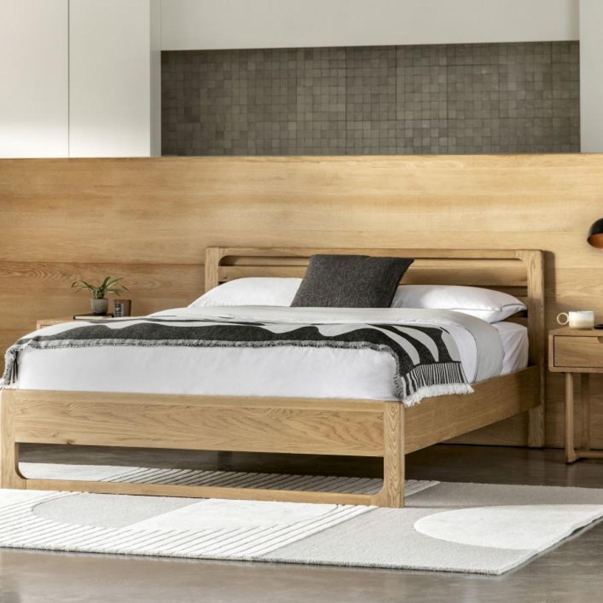 This stylish double bedstead is crafted from the finest oak and oak structural veneers where practical, with a lovely natural finish. Finger jointsv a technique used on only the finest cabinetry, on the exposed corners give strength and a sense of purpose and tradition to create long-lasting, legacy furniture that can be collected and handed down through generations. Also offered as a kingsize. Matching pieces available. Material:Oak 40% / Oak Veneered MDF 25% / Plywood 25% / Pine 10%. Colour/Finish: Natural.