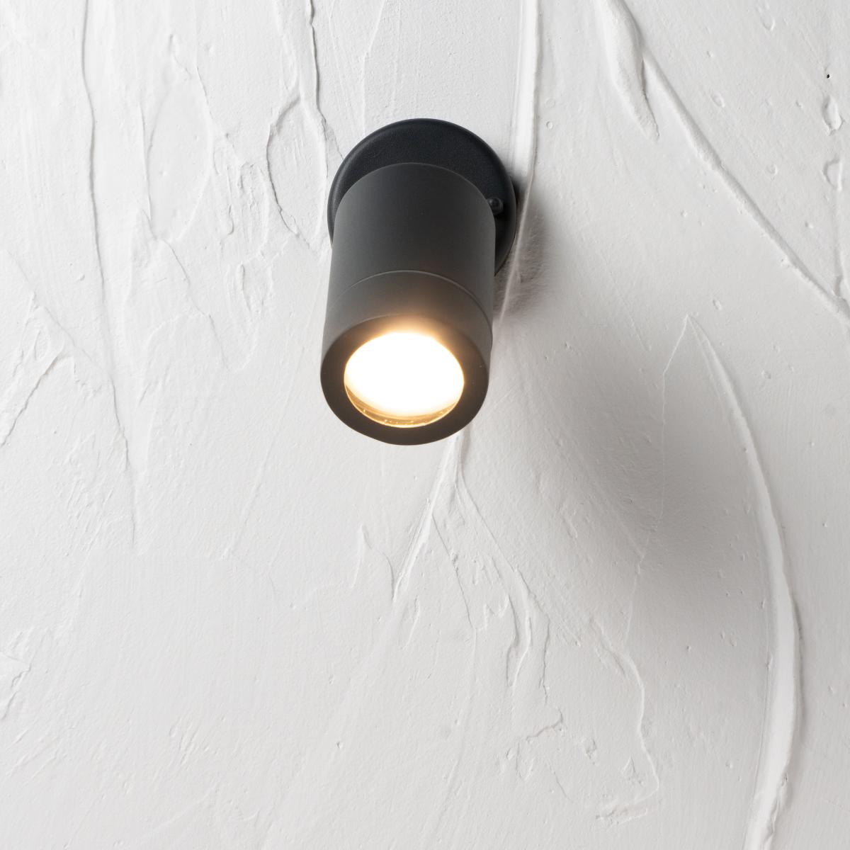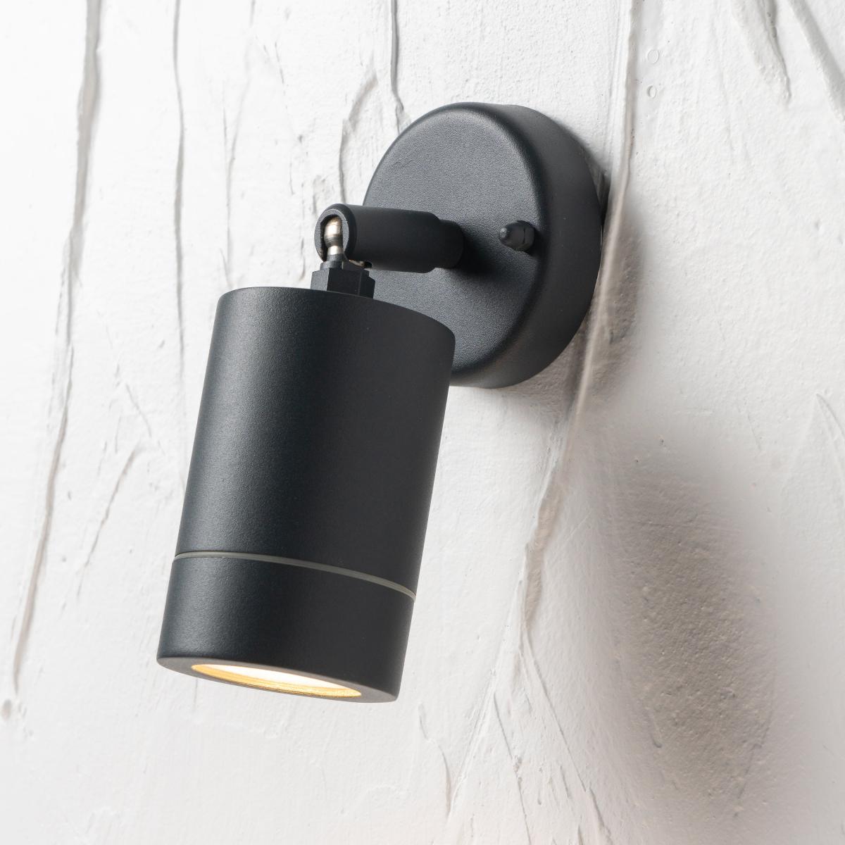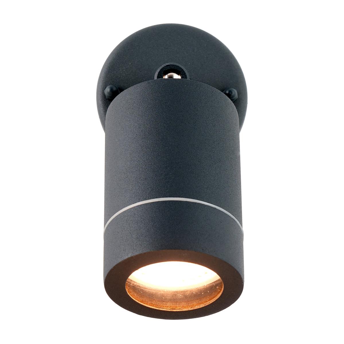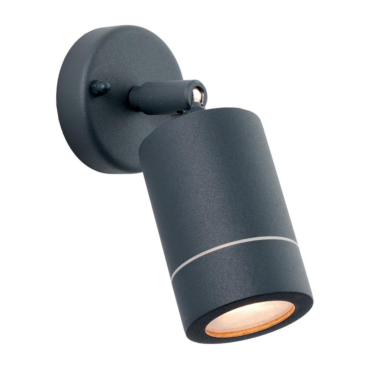 Keep your outdoor area lit and visible with this compact and contemporary style wall light. With an adjustable spotlight position you can direct it to the area that needs illuminating easily. The anthracite grey powder finish offers a clean and modern look and an IP44 rating allows this wall light to brave the elements with ease and weatherproof qualities to ensure it remains resistant to dust and water splashes.