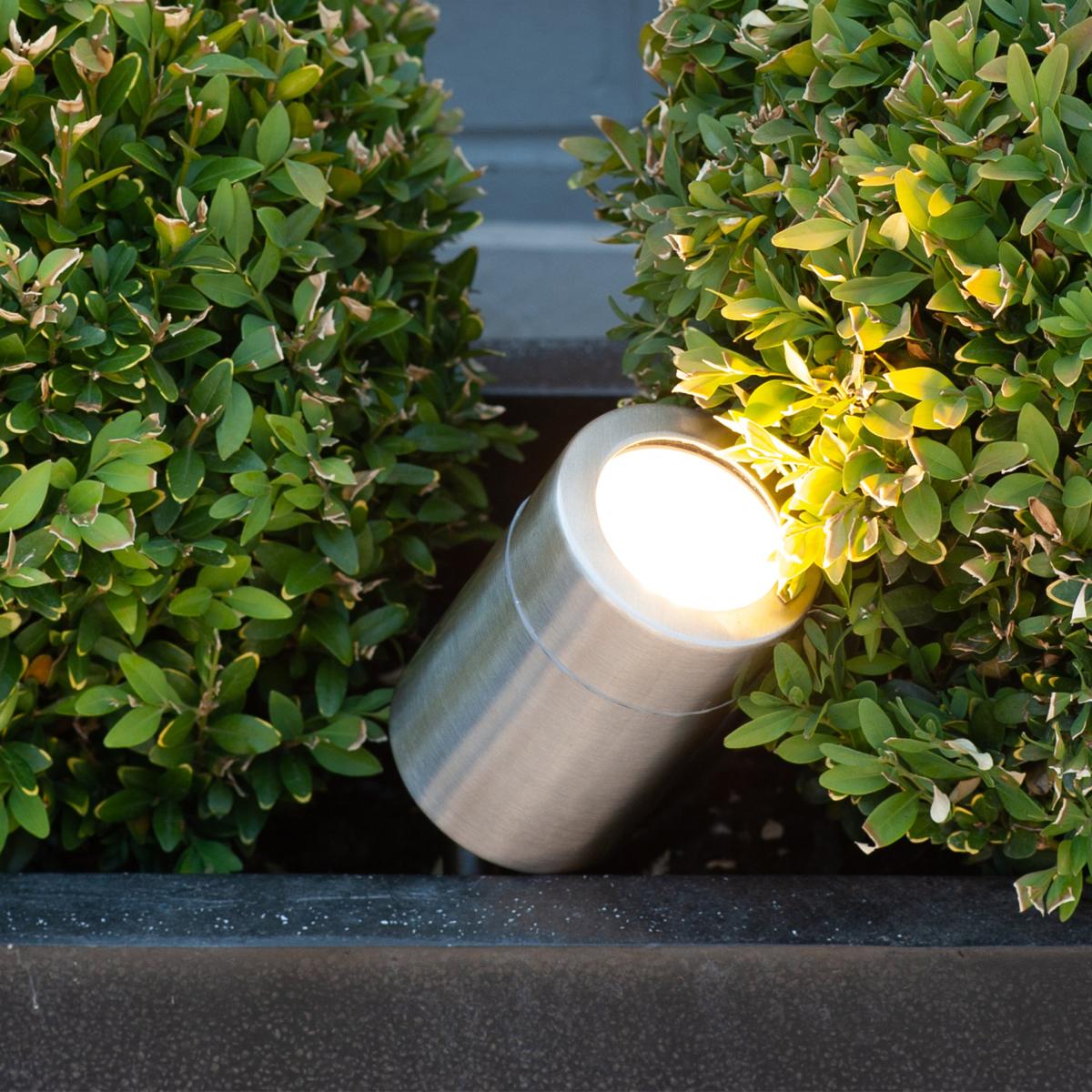 * Requires 1 x GU10 Bulbs (Not included)* Simple and clean-lined stainless steel spike garden light. * Perfect for illuminating paths or driveways with a minimalist look. * Adjustable head for focusing light on specific areas. The Lantana Metal Directional Outdoor Ground Spike Light features a simple and clean-lined stainless steel design, perfect for illuminating paths or driveways. Its adjustable head allows you to focus the light on specific areas, offering both functionality and minimalist aesthetics for your outdoor space.
