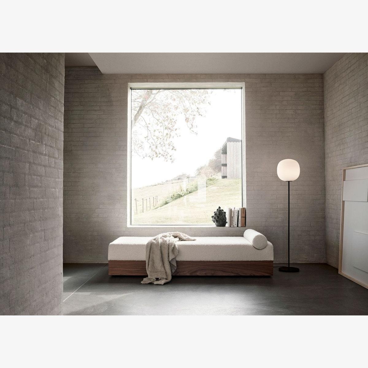 Expanding into every aspect of the contemporary interior, the Lantern Wall Lamp and Lantern Globe (ceiling) Lamp complete this iconic series. Both lamps feature a simple black steel support and fixing that allows the soft illumination of the rippled glass globe to shine brightest. Inspired by traditional Chinese rice paper lanterns, these additions allow you to take the series into all corners of the home – from bedside to the entry, kitchen to the reading room.