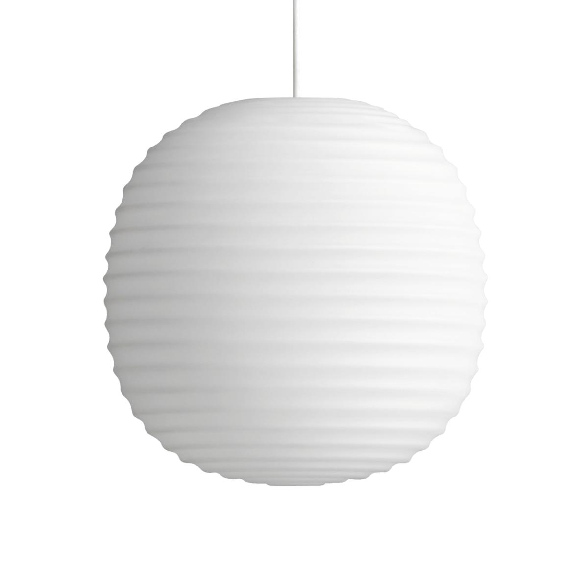 This white glass pendant light was inspired by traditional Chinese lanterns made in rice paper. This pure and graphic white sphere is entirely decorated with ribs, forming a regular textured design. With its ribbed surface, the lamp offers a unique visual impact, even when switched off, and creating magnificent illuminated effects when switched on. The light filtered through the folds and different thicknesses of the glass produces a superb chiaroscuro effect. The lighting is vibrant, warm and subdued. Available in three sizes, the Lantern pendant light is composed of a large spherical lampshade made with Tyvek, in an almost vertical position on an aluminium tapered base. It can be used individually, in rows or in clusters.