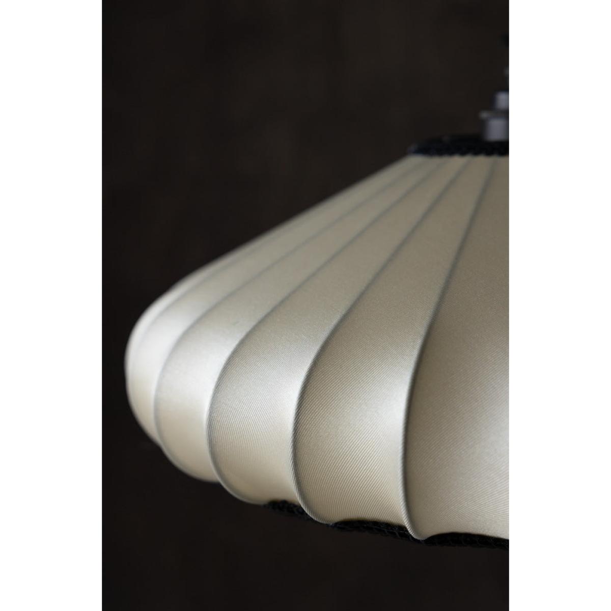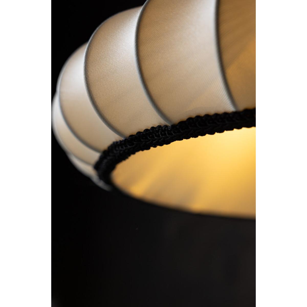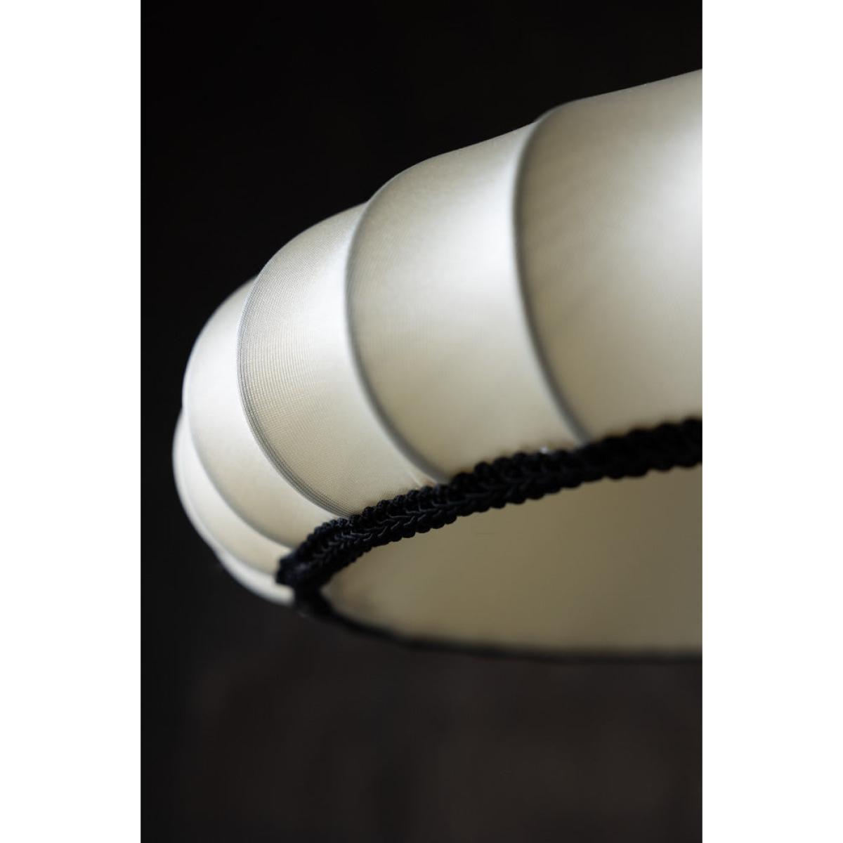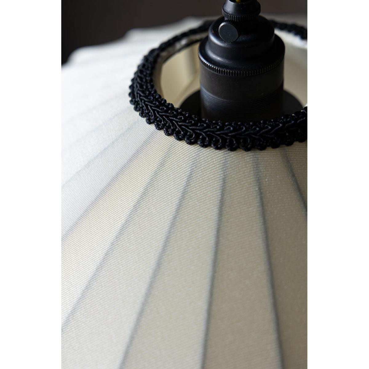 <!--td --> This beautiful, ribbed lampshade brings a touch of subtle elegance to your surroundings, whether you choose to style this in the living room, bedroom or hallway. Crafted in a delicate oyster colour, this piece is all about the neutrals during the daytime, but come the evening, when the lights go on, this takes on a gorgeously warmer hue that adds character and depth to your living space. We love the ribbed design, which gives this an artisanial yet sophisticated feel, and the black piping around the bottom of the shade that creates a pleasing contrast and adds a simple but stylish flourish to the overall finish.- Lantern Style Flush Easyfit Light Shade- Material: Polyester and Cotton - Measures: H15cm x W40cm x D40cm- Requires E27 40w bulb LED